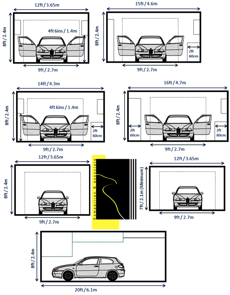A parking unit should be designed with a minimum opening of 2.5 meters if it is between two columns and with a minimum opening of 3 meters if it is between two walls, and for two parking lots next to each other if both sides of the parking lot; The wall should be at least 5 meters wide and if one side of the wall and the other side is a column; The minimum width of the opening should be 4.75 meters. And three parking lots next to each other with a minimum opening of 7 meters should be considered. The minimum length required for a parking lot is 5 meters, and therefore the minimum space of a parking lot is 2.5*5 meters.