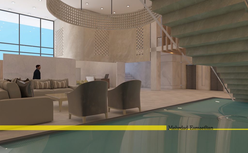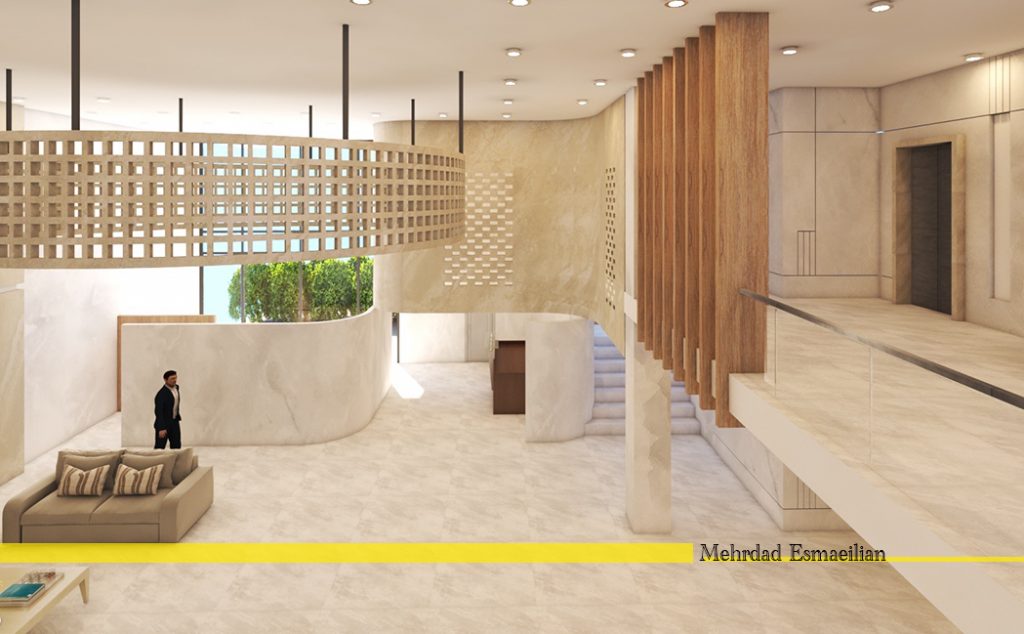 وفي هذا المشروع، أجريت دراسات مستفيضة لتصميم واجهة مبنى البلدية، وكانت النتيجة النهائية هي أن تكون مواد الواجهة من الطوب وأن أحد أهداف التصميم هو التأكيد على استخدام المواد المحلية في المنطقة. دراسة المباني الطوبية البارزة والتصاميم المختلفة للطوب الصيني في العمارة التقليدية لمقاطعة خوزستان ، فكرة زخارف الطوب الملهمة التي تسمى “خون چینی” ، والتي تعد واحدة من الطوب الزخرفي في دزفول ، هي واحدة من النقاط التي حاولت إقناع المراقب من خلال تكبير المدخل. لوحة شعرية الطوب على الواجهة، والتي تغطي جزءا كبيرا من الواجهة، تسبب لنا أن يكون لها وجهة نظر قذيفة مزدوجة، وبالإضافة إلى استخدام الزجاج واسعة للفتحات، فإنه يلغي أيضا ضرورة استخدام الستائر لفتحات في أجزاء المكتب من الخلف. في جانب لوحة شعرية هي عناصر الحجر العمودي التي تظهر الحركة نحو التميز ورغبة المجمع للتقدم وينتهي مع سقف أخضر.