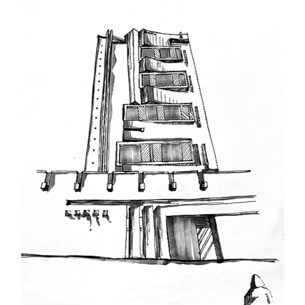 تم بناء المبنى على أرض تبلغ مساحتها حوالي 300 متر مربع بعرض 10 أمتار وهو وحدة واحدة. من حيث موقع المبنى على موقع حركة المشاة في هذا القسم مرتفع ، لذلك في تصميم الواجهة من خلال اللعب بالأحجام واستخدام الإطارات المخصصة للمدرجات ، تم إنشاء هذا الانسجام في الواجهة. وهذا يعني أنه اعتمادا على موقف المستخدمين من الشرفة، والقدرة على نقل لوحات وحقوق الخصوصية ممكن. المبنى مجاور للشارع ويثير الشكل الهائج في شكل واجهة الحركة