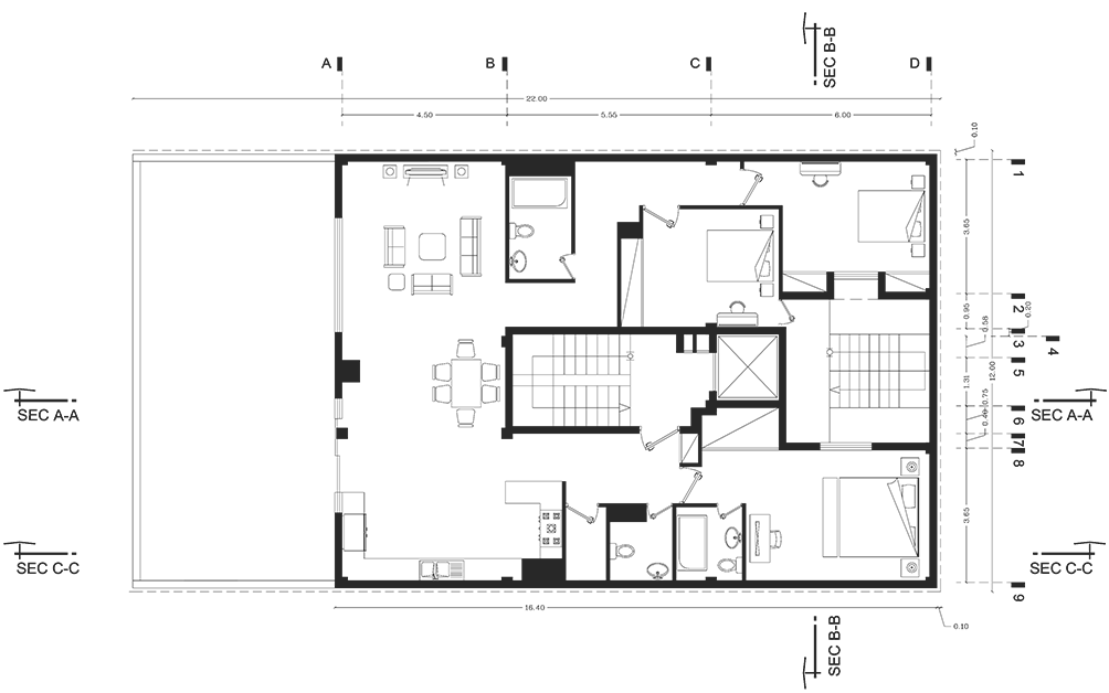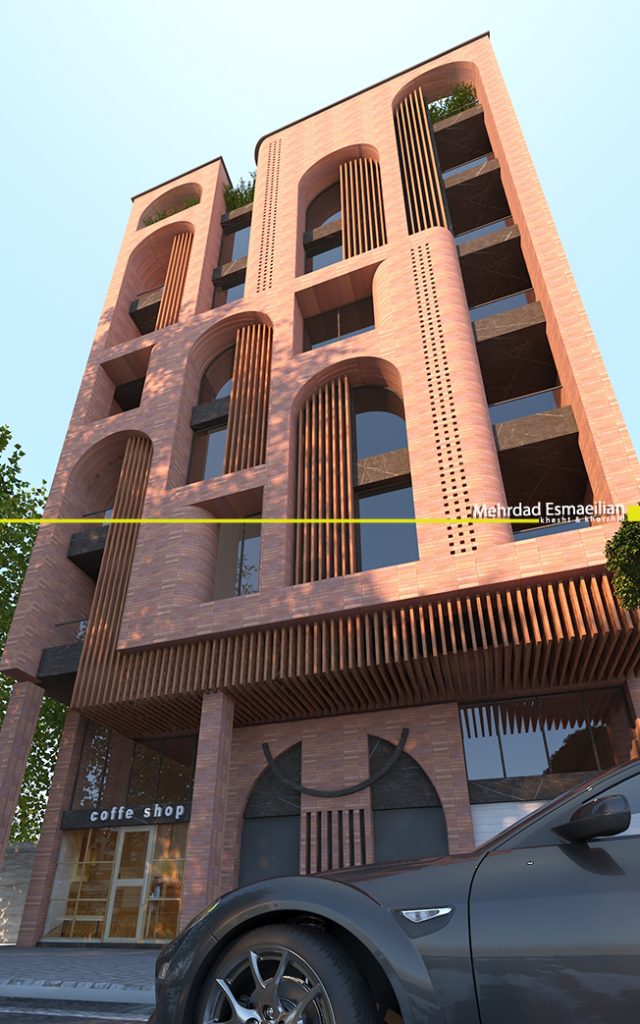 في هذا المشروع ، نظرا لوجود العديد من الفتحات في الواجهة ، واجهنا العديد من الأحواض في جدار المبنى ، لذلك من خلال القيام بحركة عمودية وصعودية ، قمنا بحل هذا التحدي. على الجانب الأيمن من الواجهة هو عنصر طويل جدا التي يتم تطبيقها عن طريق تغيير لون المدرجات. على الجانب الآخر من ألمانى هناك درج غير منتظم في عموميات العمل ، والذي يسبب مجتمعة حركة عمودية وصعودية في الواجهة. تتم المواد المستخدمة في واجهة الطوب في جانبين ، دوران الطوب على حد سواء في العمق وعلى السطح ، مما يجعل بعد المبنى أكثر مما هو عليه. وقد استخدمت المدرجات الزجاجية للإضاءة الطبيعية في أفضل طريقة ممكنة.