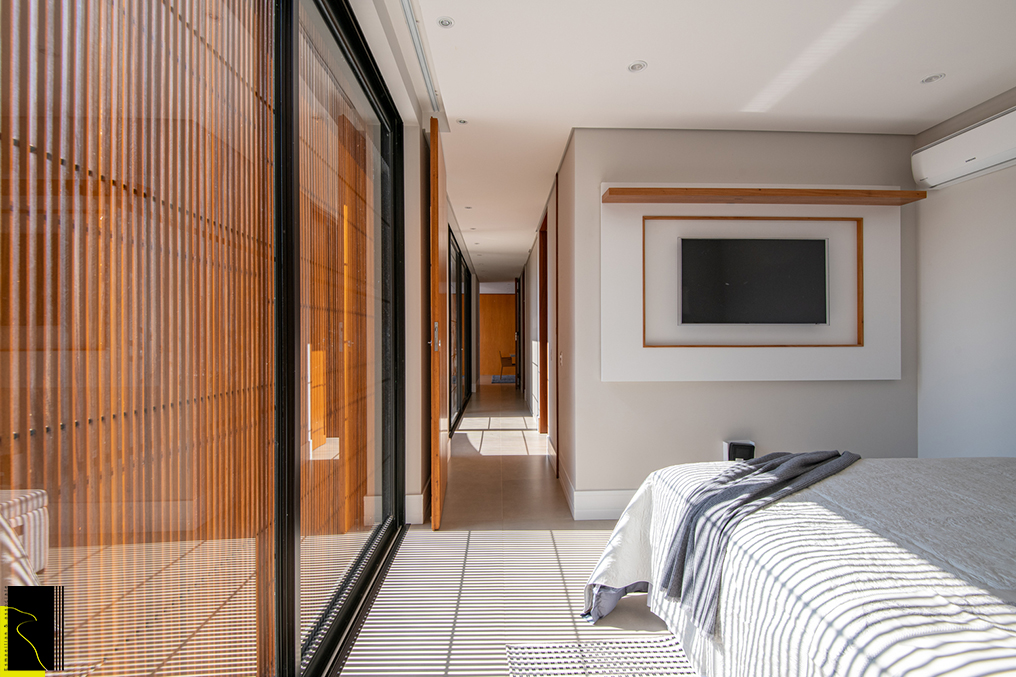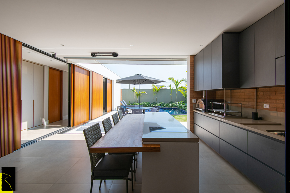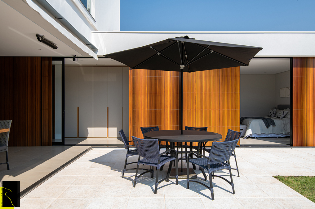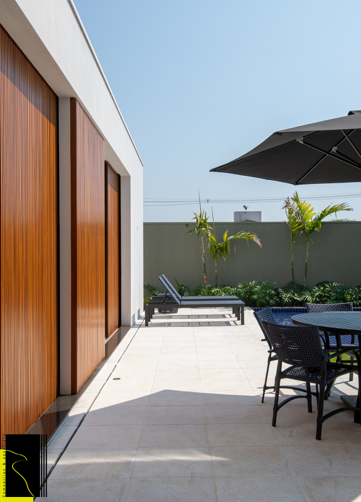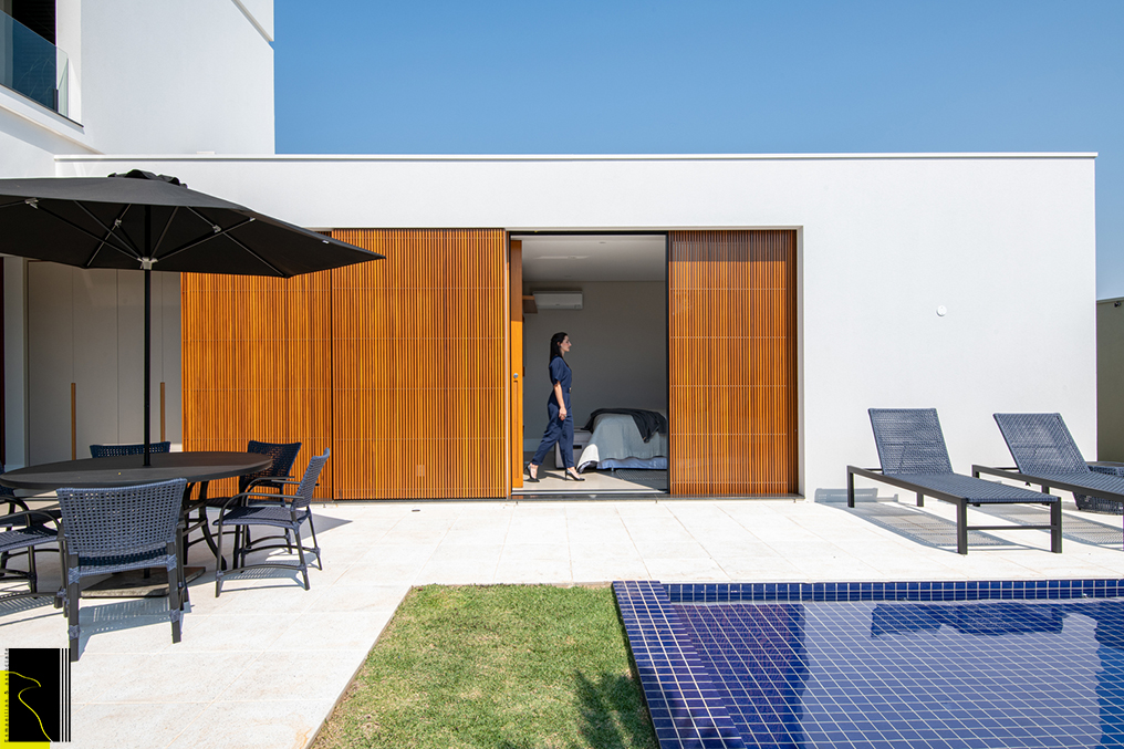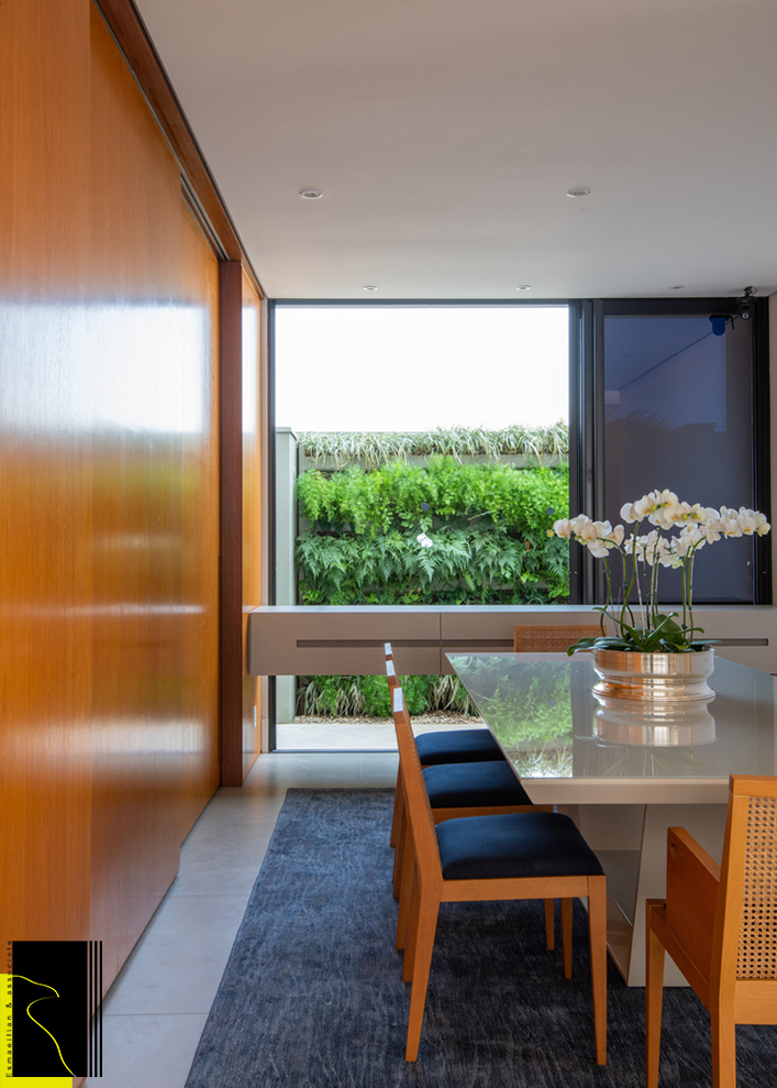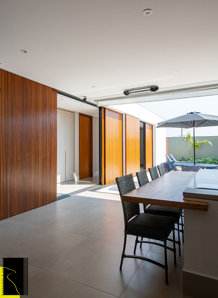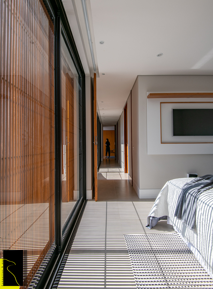 با ایده حداکثر باز بودن در باغ ، برش های چوبی کشویی اساسی هستند زیرا به آنها اجازه می دهد تا نور طبیعی مناطق را روشن کرده و خورشید را فیلتر کند. اولویت ارباب رجوع ، محل زندگی خوب بود و با این فرض خانه دارای نواحی کاملاً داخلی و خارجی است که در صورت بسته شدن درهای کشویی می توانند مخلوط یا جدا شوند.
