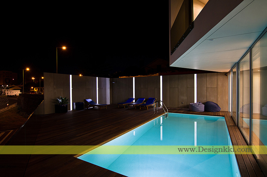 بنابراین، این خانه از رابطه خود با محیط بهره می برد، نه فقط از نظر حجم خاص، بلکه همچنین با استفاده از طرح تمیز، بافت ها و مواد، به ویژه سنگ بازالت، بومی این جزایر آتشفشانی با بتن.