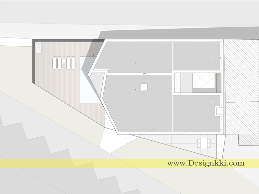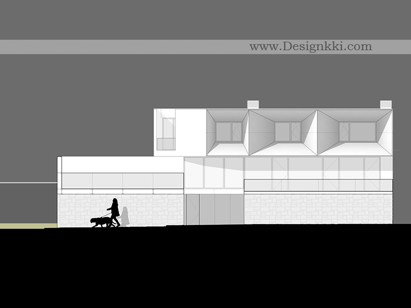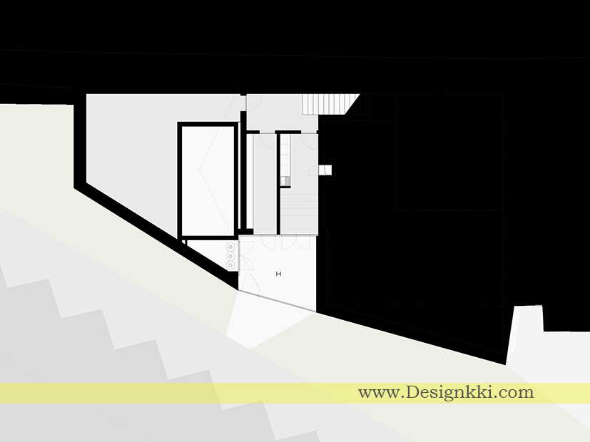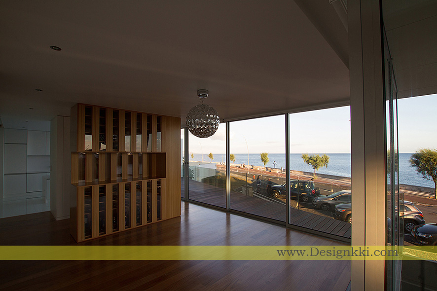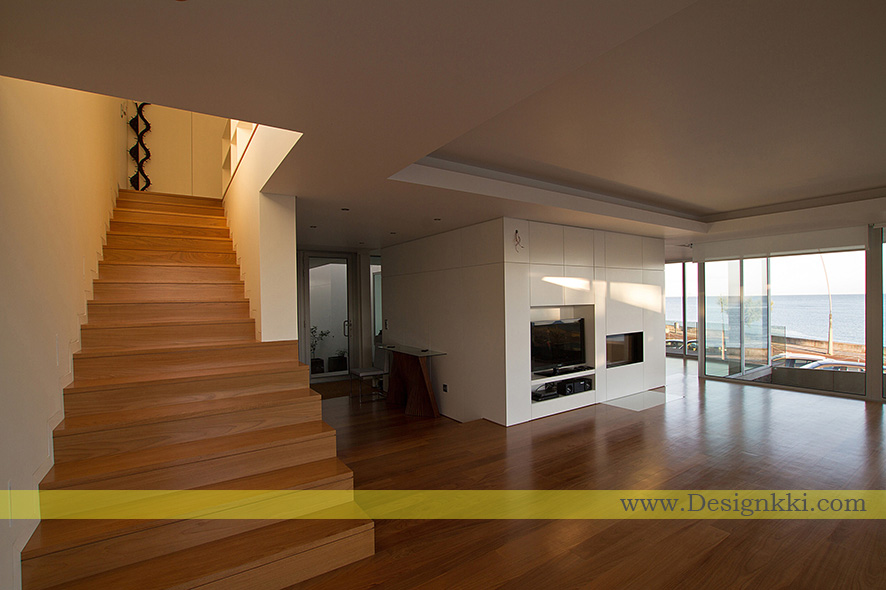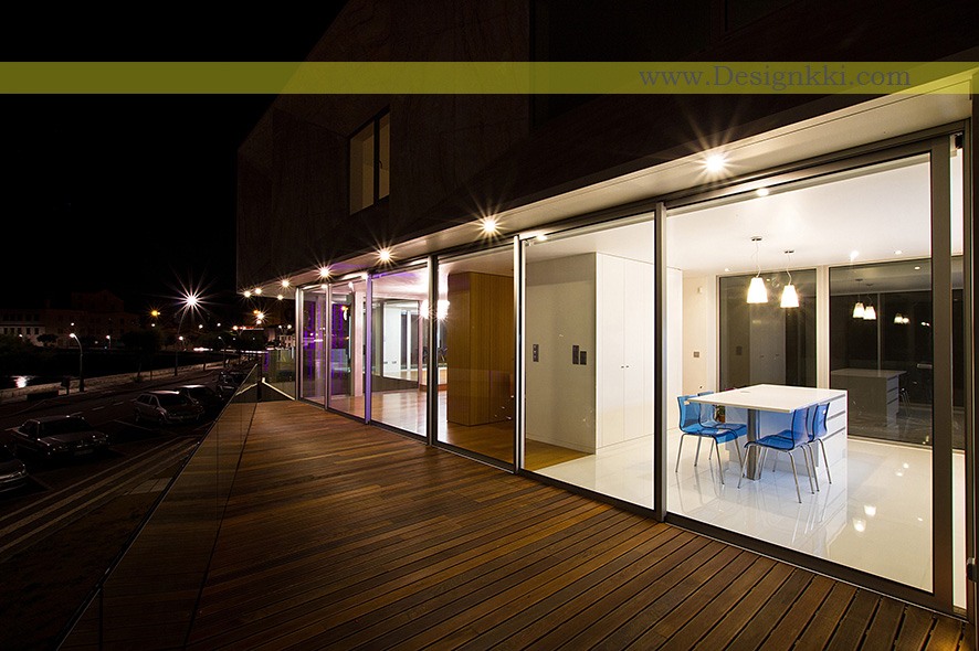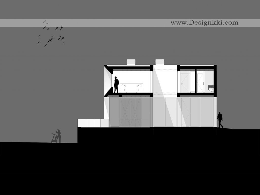 از یک دیوار سنگی باقیمانده از یک بنای قدیمی، خانه ای معاصر ظاهر می شود که به دریا تحویل داده می شود. در واقع، این جلد جدید برای بهبود شبکه شهری خود در محل استقرار طراحی شده است. وخامت ظاهر مسکن که در همسایگی دیده می شود، در تضاد با حجم جدید است و رابطه ای بین خانه و محیط اطراف ایجاد می کند. بدون شک، این خانه محیط شهری خود را بهبود می بخشد، و همچنین از منظره دریا بهره می برد.