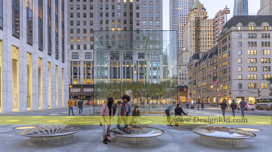 از طریق لایه برداری دقیق لایه های تاریخ و ترمیم حساس مکعب، Apple Fifth Avenue در تلاش است تا با دسترسی بیشتر به آن از سه طرف، این میدان را احیا کند و روحیه مترقی و ابتکاری را که نماد اپل است تقویت کند. این پروژه نتیجه همکاری نزدیک بین تیم طراحی در اپل به سرپرستی مدیر ارشد طراحی، سر جاناتان آیو و تیم های مهندسی طراحی و مهندسی دردفتر فاستر و شرکااست.