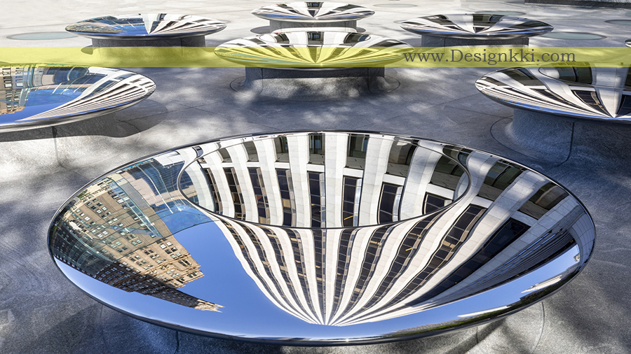 نه عدد \”Skylenses\” آینه دار و ابتکاری زیبا در یک شبکه در دو طرف مکعب شیشه ای چیده شده اند. این مجسمه های عمومی به بازدیدکنندگان این امکان را می دهد تا به صورت کاملاً جدید با خط آسمان مشهور شهر نیویورک تعامل داشته باشند. سطوح منحنی بدون درز آنها مکانی برای نشستن ایجاد می کند در حالی که چشم انداز منعکس شده ای از معماری شهر ایجاد می کند. Skylenses دارای یک سیستم خنک کننده گردش هوا نوآورانه در زیر سطح بالایی است که برای جذب انرژی خورشیدی و محافظت در برابر سرما طراحی شده است و به مردم امکان می دهد از آنها در طول سال استفاده کنند. شیشه آینه ای نور طبیعی را به داخل فروشگاه انبساطی می ریزد – اندازه فضای دو برابر.