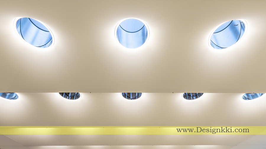 یک سالن بزرگ در زیر میدان با انرژی میدان عمومی بالا مطابقت دارد، با سقفی با نور پس زمینه و ابری مانند یک پارچه منحنی سه بعدی ساخته شده است که به طور نوآورانه نور طبیعی و طبیعی را برای مطابقت با تغییر رنگ روز در روز ترکیب می کند – تجربه ای تولید می کند که قبلاً هرگز حاصل نشده است. حتی در شرایط کم نور، شدت آن در اطراف نورگیرها بیشتر است و به تدریج از آن فاصله می گیرد و باعث می شود که نور طبیعی باعث طغیان فضای داخلی شود. یک حلقه چراغ در اطراف هر نورگیر شامل روشنایی کانونی است که محصولات روی میزهای نمایشگر را برجسته می کند. سیستم تهویه کاملاً در کف سنگ یکپارچه شده و به طور هوشمندانه به میزان اشغال و هوای بیرون پاسخ می دهد و مصرف انرژی را بهینه می کند.