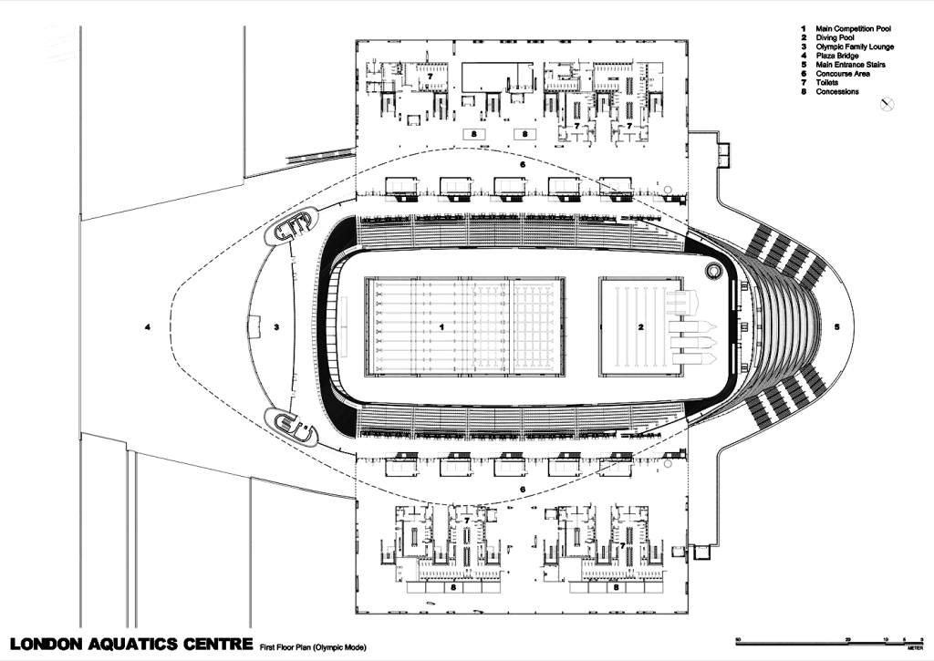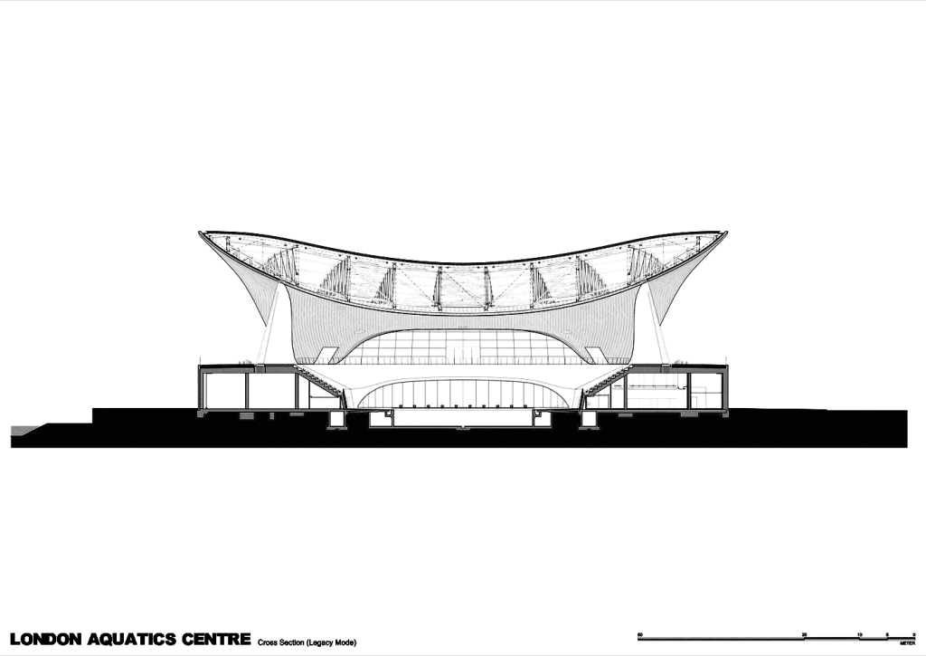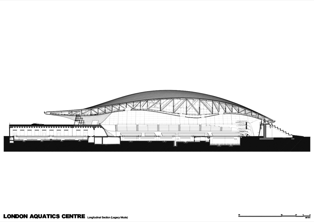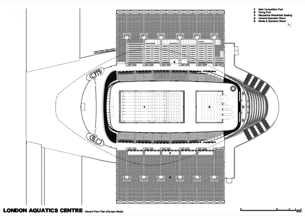 مرکز Aquatics Center با انعطاف پذیری ذاتی طراحی شده است تا ۱۷،۵۰۰ تماشاگر را برای بازی های لندن ۲۰۱۲ در حالت “المپیک” در خود جای دهد و در عین حال ظرفیت بهینه تماشاگر ۲۰۰۰ را نیز برای استفاده در حالت خاص فراهم “Legacy” بعد از بازی ها فراهم کند.