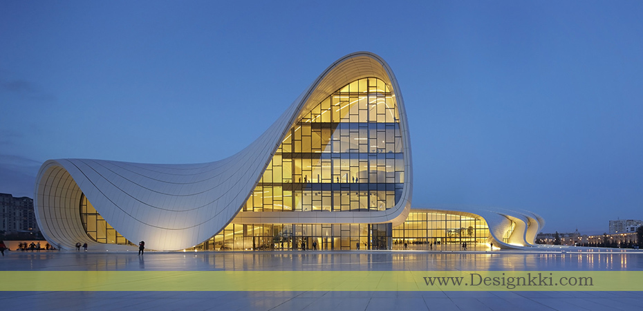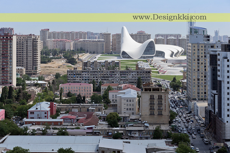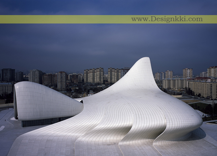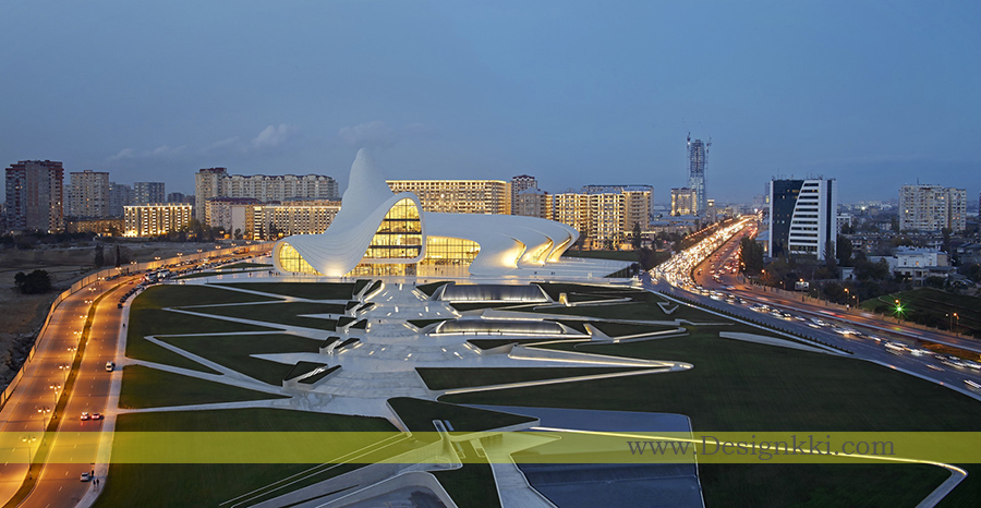 معماران زاها حدید در پی یک مسابقه در سال 2007 به عنوان معماران طراحی مرکز حیدر علی اف منصوب شدند. این مرکز، برای تبدیل شدن به ساختمان اصلی برنامه های فرهنگی کشور، از معماری سخت و غالباً برجسته شوروی که در باکو بسیار رایج است، جدا می شود و درعوض ابراز حساسیتهای فرهنگ آذری و خوش بینی ملتی که به آینده می نگرد.