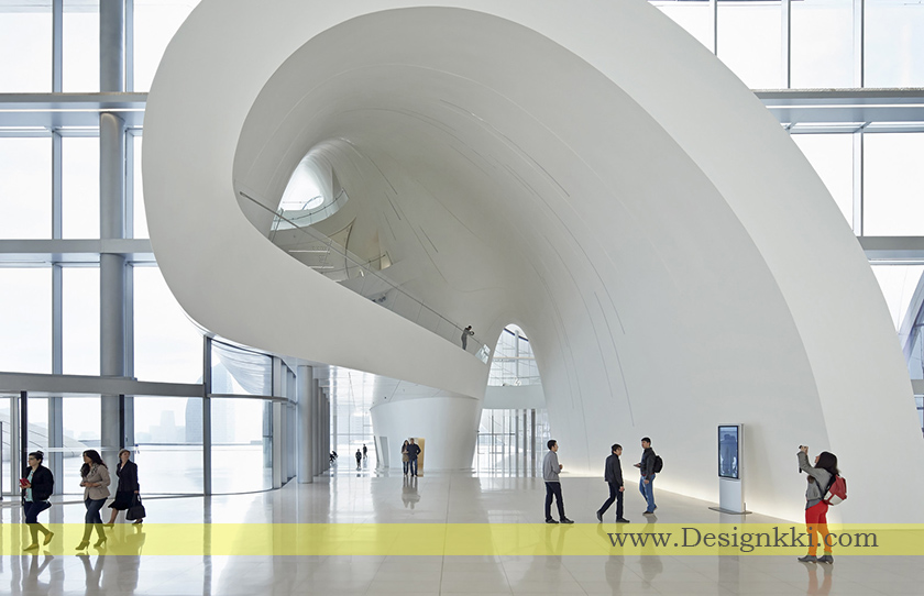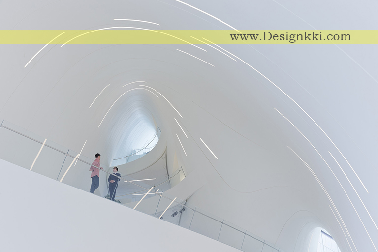 هندسه، ساختار، مادهیکی از مهمترین و در عین حال چالش برانگیزترین عناصر پروژه، توسعه معماری پوست ساختمان بود. جاه طلبی ما برای دستیابی به سطحی چنان پیوسته که به نظر همگن می رسد، نیاز به طیف وسیعی از عملکردهای مختلف دارد، منطق ساخت و ساز و سیستم های فنی باید با هم جمع شده و در پوشش ساختمان ادغام شوند. محاسبات پیشرفته امکان کنترل مداوم و ارتباط این پیچیدگی ها را در بین شرکت کنندگان بیشمار پروژه فراهم می آورد.