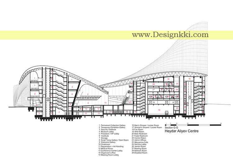 همانند سایر کارهای ما، طراحی مرکز حیدر علی اف از تحقیقات و تحقیقات ما درباره توپوگرافی سایت و نقش مرکز در فضای فرهنگی گسترده تر، شکل گرفت. با استفاده از این روابط مفصل، طراحی در این زمینه گسترش فرصت های فرهنگی آینده برای ملت. تعبیه می شود.