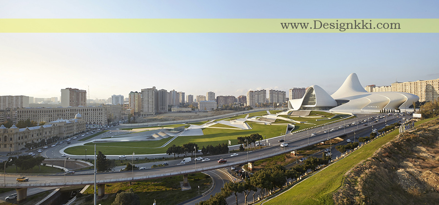طراحی مرکز حیدر علی اف یک رابطه مداوم و روان بین میدان اطراف آن و فضای داخلی ساختمان ایجاد می کند. میدان، به عنوان سطح زمین ؛ به عنوان بخشی از بافت شهری باکو، که برای همه قابل دسترسی است، افزایش می یابد تا فضای داخلی به همان اندازه عمومی را در بر بگیرد و توالی فضاهای رویدادی را به جشن جمعی فرهنگ آذری معاصر و سنتی اختصاص دهد. سازندهای مفصلی مانند لرزش، انشعاب، چین خوردگی و انعطاف پذیری این سطح میدان را به منظره ای معماری تبدیل می کنند که بسیاری از عملکردها را برای استقبال، در آغوش گرفتن و هدایت بازدید کنندگان از طریق سطوح مختلف داخلی انجام می دهد. با این حرکت، ساختمان تمایز متعارف بین شی معماری و منظر شهری، پاکت ساختمان و میدان شهری، شکل و زمین، فضای داخلی و خارجی را محو می کند.