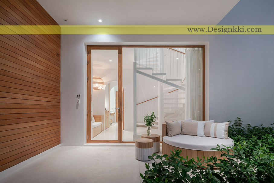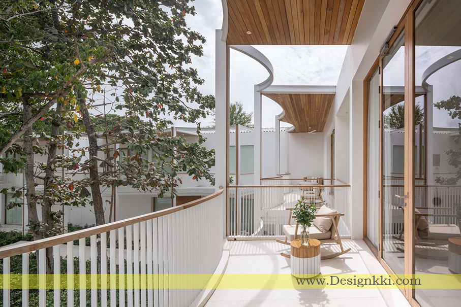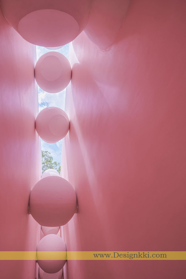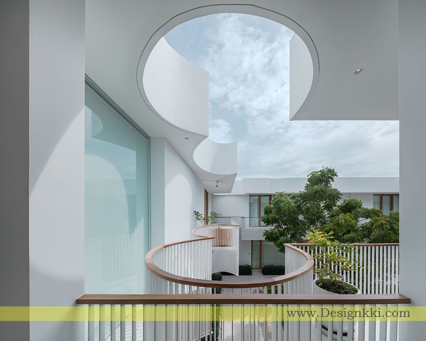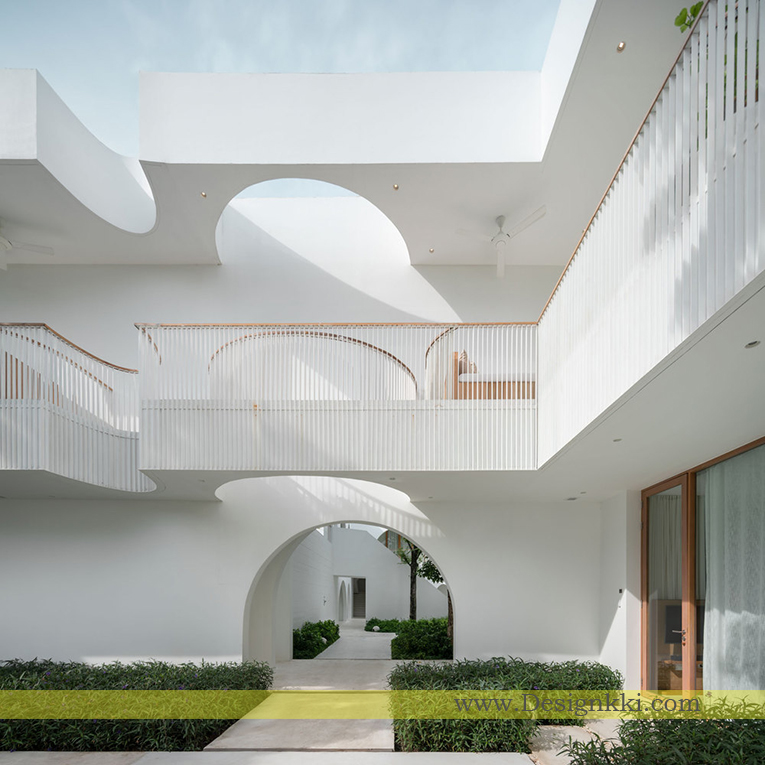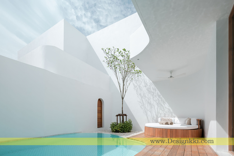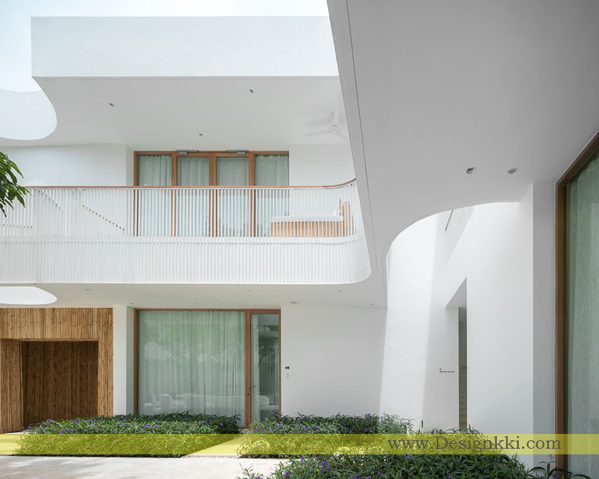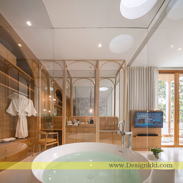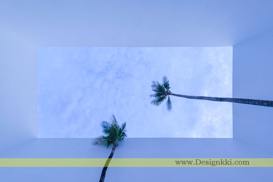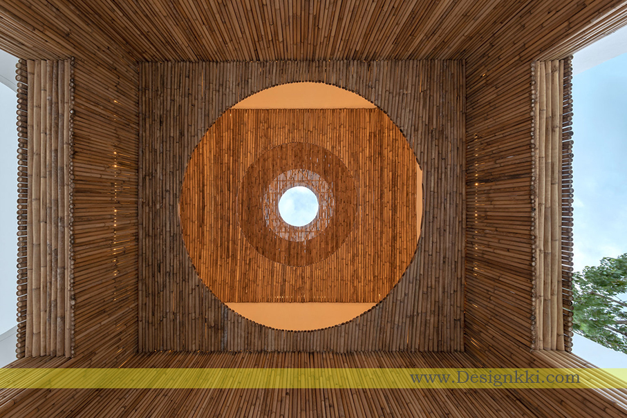 لایه های حفره های مستطیل بامبو بین اتاق ناهار خوری در فضای باز و اتاق خواب در فضای باز قرار می گیرند در حالی که حفره های بتونی بیضی شکل به رنگ سفید در فضای انتقال بین اتاق ناهار خوری در فضای باز و اتاق نشیمن در فضای باز ساخته شده اند. ما میهمانان خود را تشویق می کنیم که به آسمان نگاه کنند و گرمای خورشید را احساس کنند.