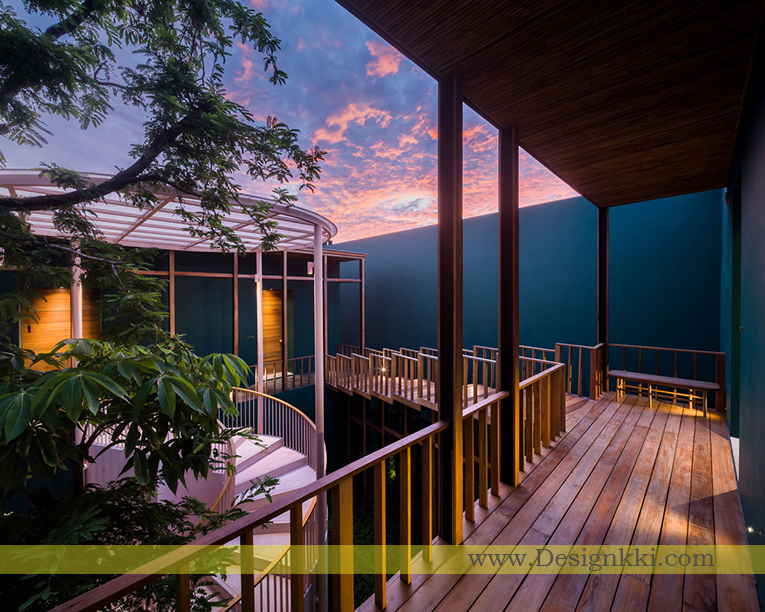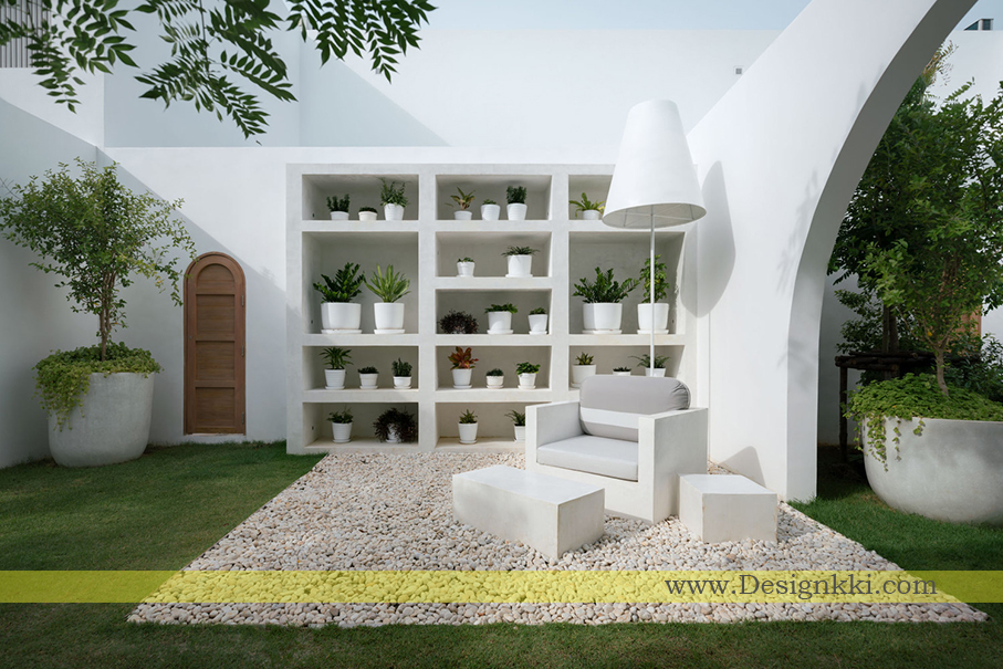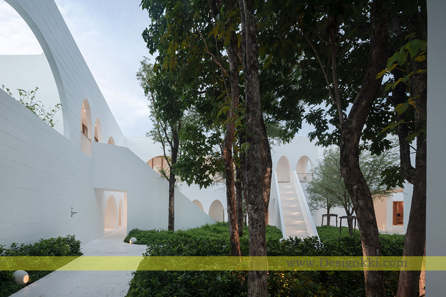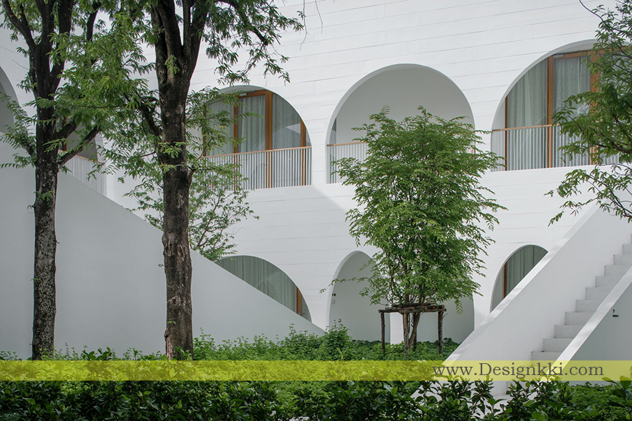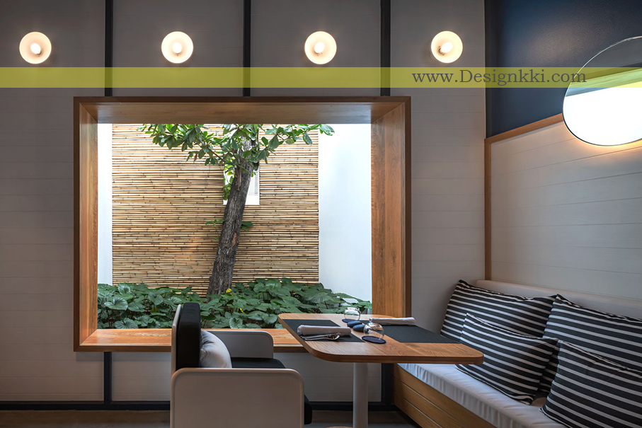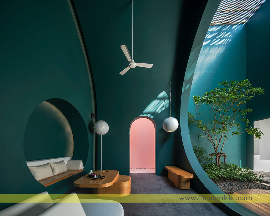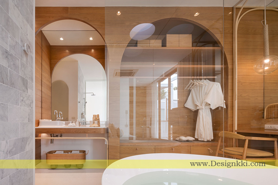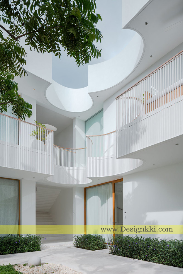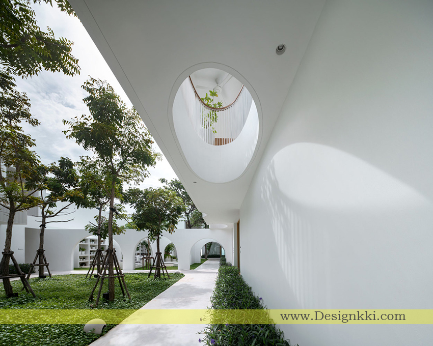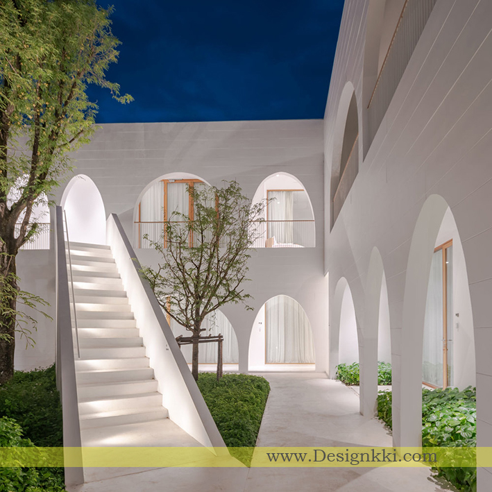 لایه های حفره های مستطیل بامبو بین اتاق ناهار خوری در فضای باز و اتاق خواب در فضای باز قرار می گیرند در حالی که حفره های بتونی بیضی شکل به رنگ سفید در فضای انتقال بین اتاق ناهار خوری در فضای باز و اتاق نشیمن در فضای باز ساخته شده اند. ما میهمانان خود را تشویق می کنیم که به آسمان نگاه کنند و گرمای خورشید را احساس کنند.