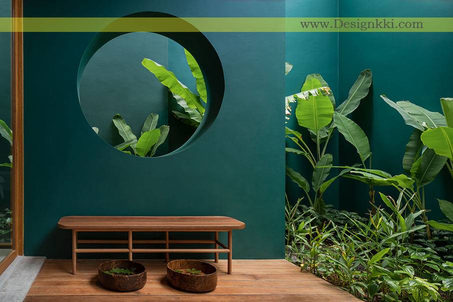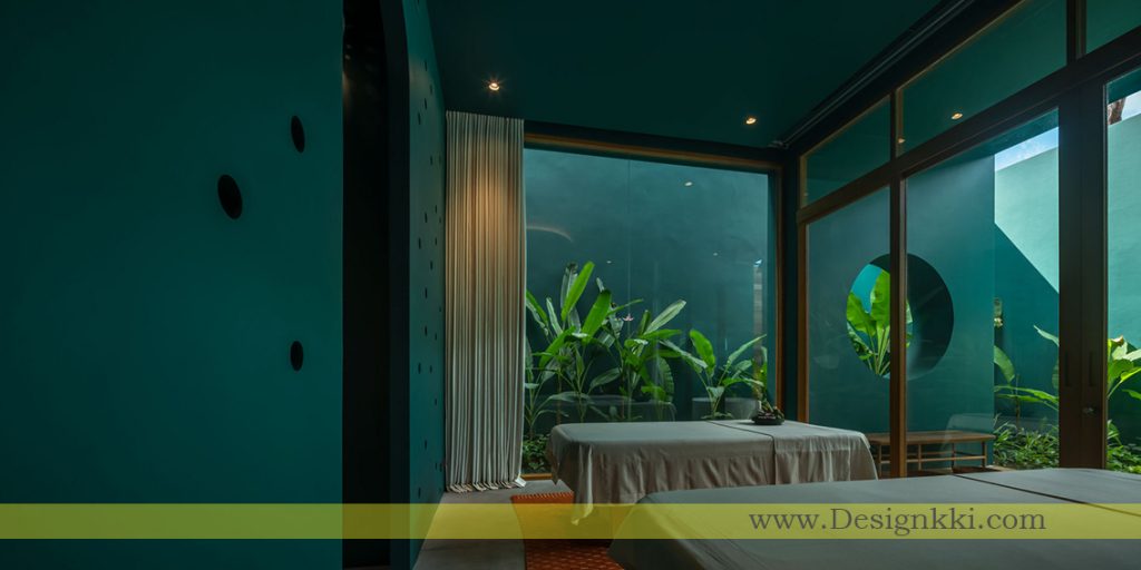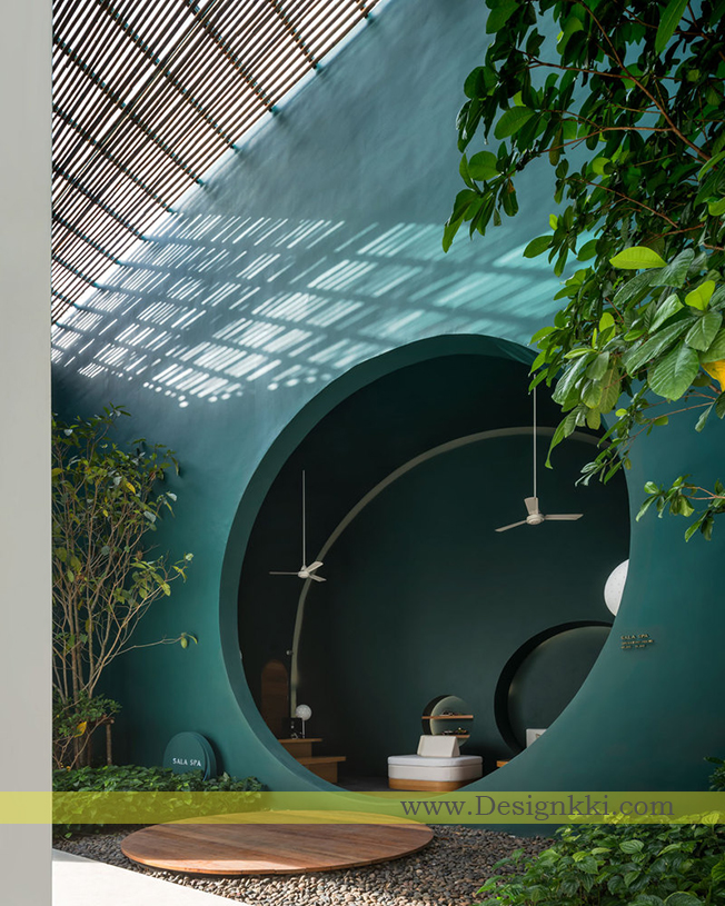 درب شیشه ای شفاف طبیعت را به اتاق درمان وارد می کند. هیچ تمایز مشخصی بین فضای داخلی و فضای بیرونی سالا ساموی چاونگ وجود ندارد.