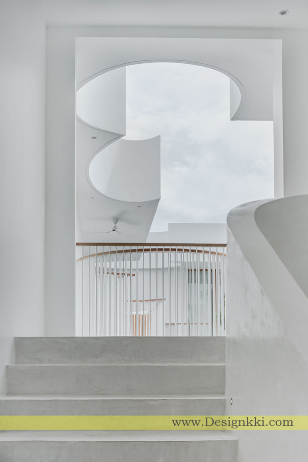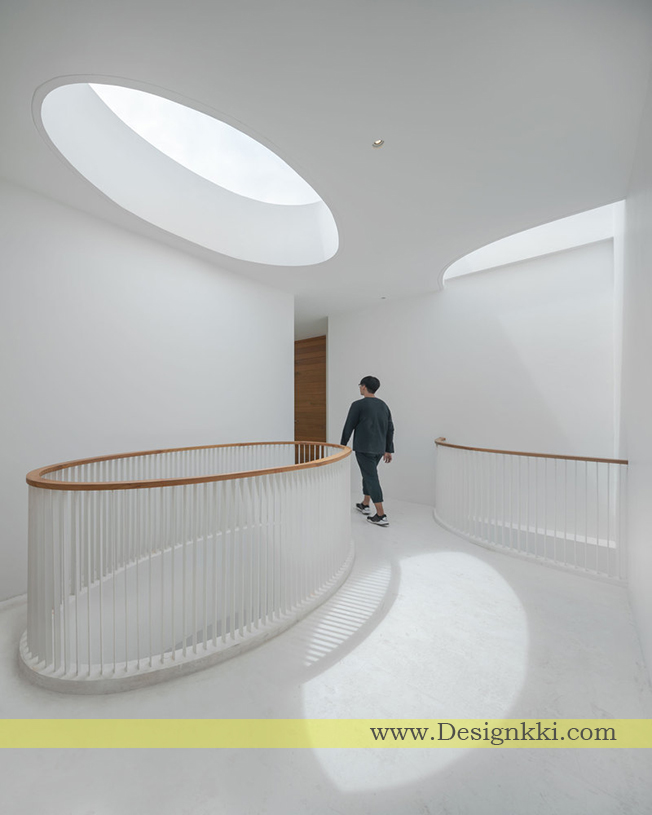 ما توجه خود را به آسمان معطوف می کنیم. در هر انتقال بین حیاط، ما خلأهای عمودی را به اشکال، اندازه و مواد مختلف باز می کنیم.