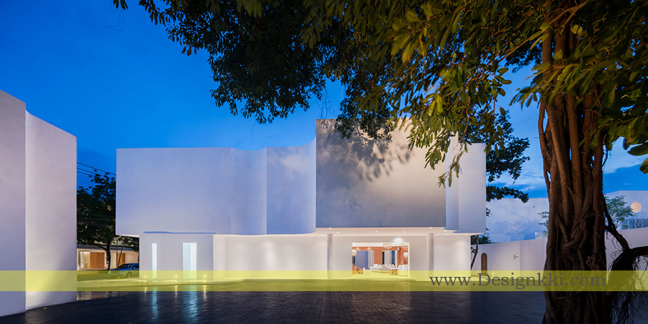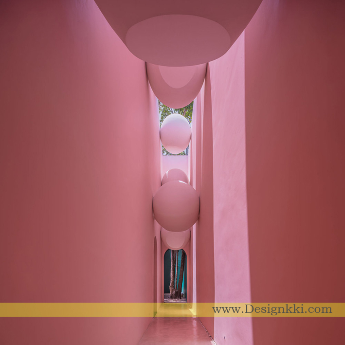 یک عنصر معماری غالب در کنار جاده سالا ساموی چاونگ دیوارهای سفید هستند. آنها طولانی، عظیم، گاهی مقعر و گاهی محدب هستند. اثرات سایه همان چیزی است که وقتی دیوارها را می کشیدیم به آن علاقه داریم. فقط در ناحیه آبگرم است که از رنگها، سبز تیره و بعداً صورتی استفاده می کنیم.