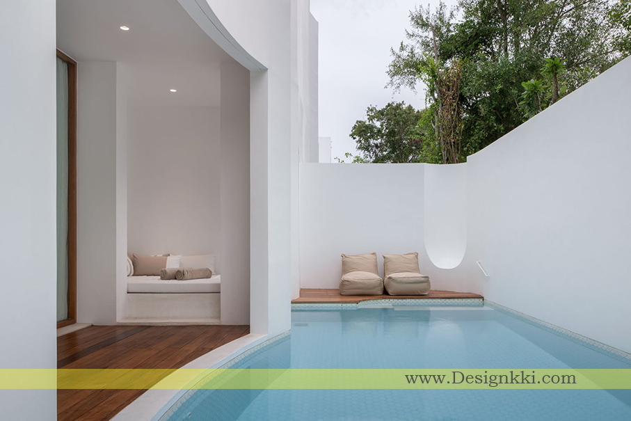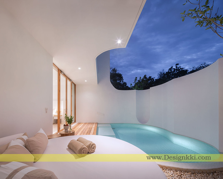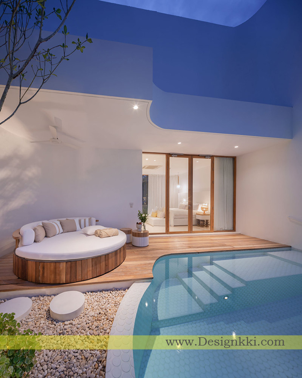 تمایل هر اتاق به یک حیاط خلوت اختصاصی است که مهمانان ما می توانند روی یک تخت دایره ای بزرگ و دایره ای در کنار استخر اختصاصی خود استراحت کنند. معماری داخلی در سالا ساموی گسترش نمای خارجی و بالعکس است.