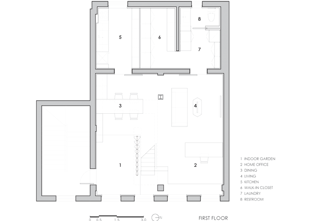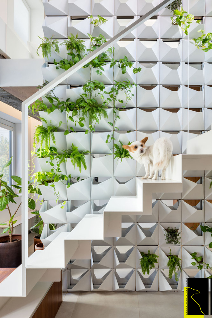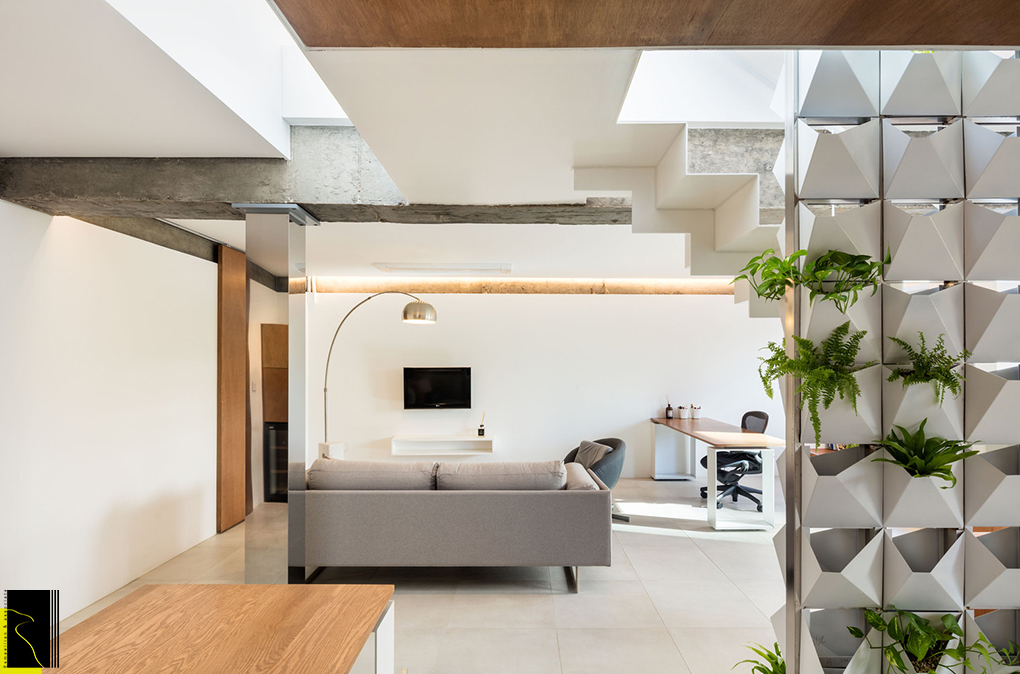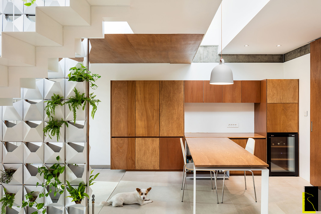 لوفت جونگوا-دونگ یک اقامتگاه تک خوابه است که در طبقه بالای یک ساختمان صنعتی ۳۰ ساله قرار دارد. مشتری یک زن مجرد و حرفه ای محور است و علاقه شدیدی به بهزاست دارد. به درخواست او، این ارتفاع دو طرفه، دیوار سبز دو طرفه به عنوان محور محل اقامت ایجاد شد. دیوار سبز با اندازه گیری ۲٫۱ در ۴٫۵ متر به عنوان صفحه ای عمل می کند که منطقه زندگی را از ورودی تقسیم می کند. دیوار سبز از 56 واحد کمی متفاوت تشکیل شده است, با هم ایجاد یک جریان مداوم. واحدها را می توان به راحتی از دیوار برای تعمیر و نگهداری حذف در کنار دیوار سبز پلکان جدیدی قرار دارد که اتاق نشیمن اصلی و اتاق خواب طبقه بالا را به هم متصل می کند. محل اقامت دارای آشپزخانه کوچک، کمد پیاده روی، توالت، اتاق رختشویی، و ناهار خوری طرح باز و منطقه زندگی در طبقه اصلی است. یک اتاق خواب کوچک با حمام در طبقه بالا وجود دارد. پالت ماده برای تار کردن تفاوت بین قدیمی و جدید انتخاب شده است. بتن، سنگ آهک رنگ کف کاشی، چوب سه لا رنگی، و کف ساج ایجاد هماهنگی به جای کنتراست. ساختار بتن موجود شده است به طور انتخابی در معرض اضافه کردن ناهمی, و چوب سه لا لوان رنگی و کف ساج اضافه کردن گرما به فضا.