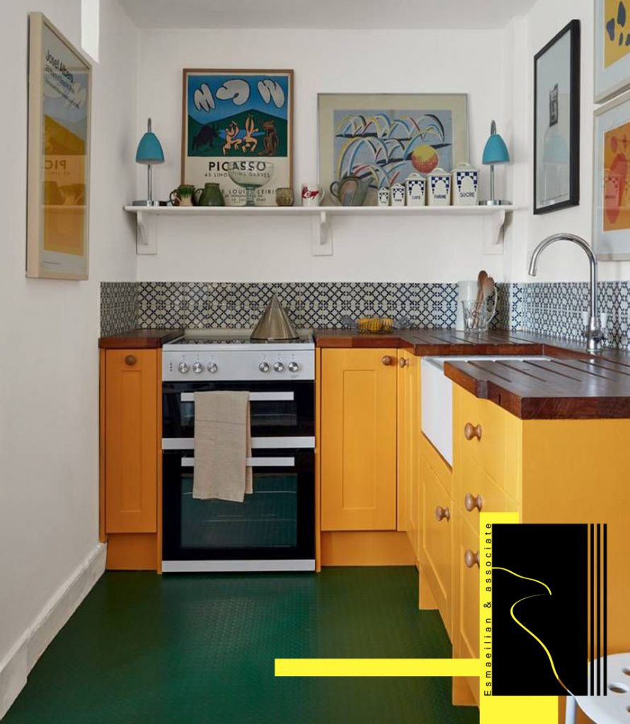 کاشی شیوه ای معمول برای آشپزخانه است که حفاظت از آن آسان است و تمیز کردن آن به سادگی صورت می گیرد. با دوام است و ویژگی سطح براق و بازتابنده ی آن باعث میشود فضای آشپزخانه بزرگتر و دلباز تر به نظر برسد.