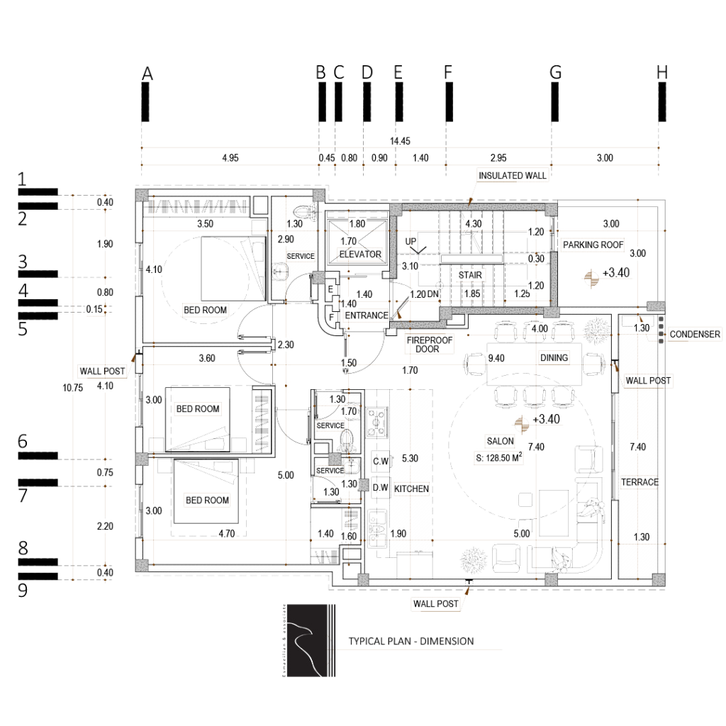 🟡استفاده از جانپناه شیشه ایی و فلاورباکس در تراس تلاش برای اتصال ساختمان به آیکون فضای سبز محوطه است.