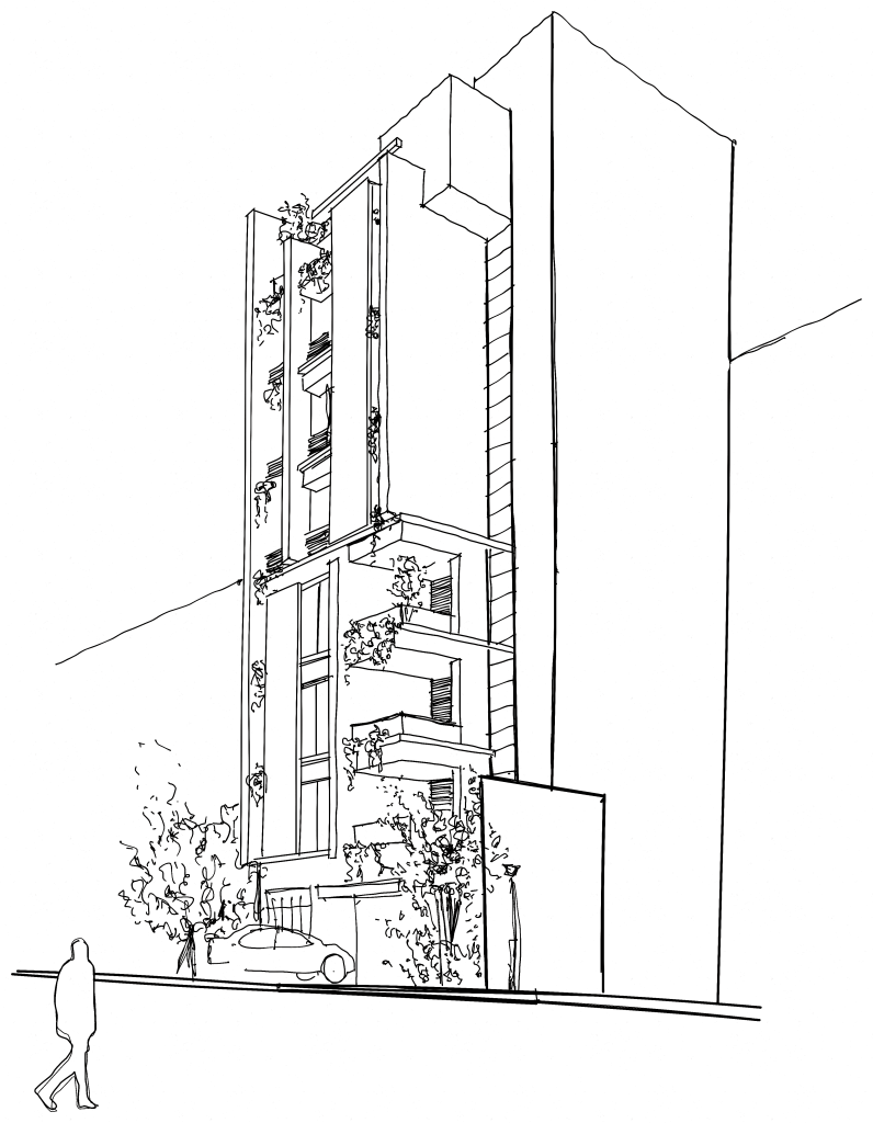🟡ایده طراحی پلان و نما به شکلی اجرا شده است که در در طبقات ابتدایی تراسها به شکل معلق دیده میشوند.