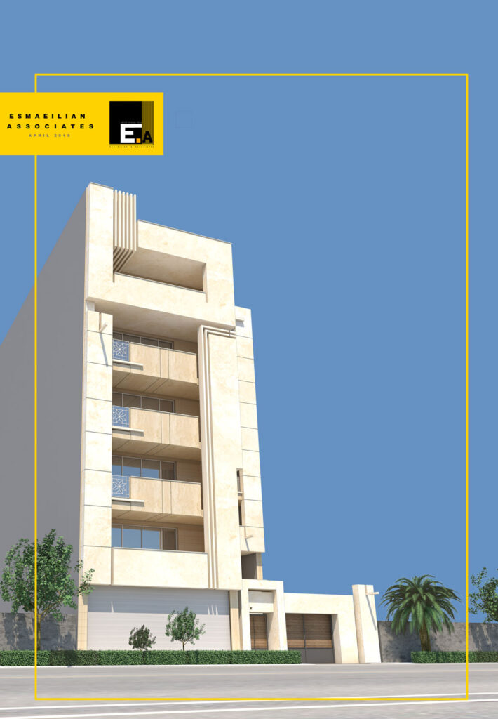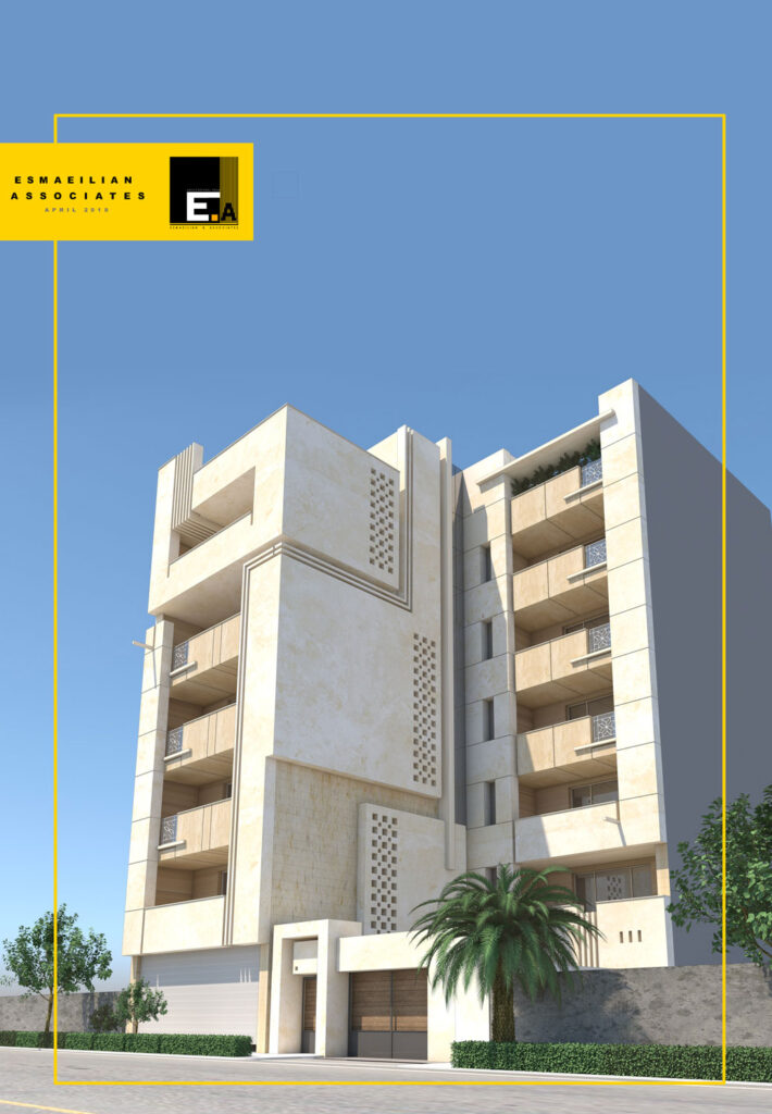 نمای ساختمان از احجام صلبی از جنس سنگ تشکیل شده است که با استفاده از برش سی ان سی و استفاده از پروفیل هایی که روی احجام نما حرکت کرده و جاهایی دچار چرخش شده اند، نمایی مدرن و همسو با طراحی داخلی پلانهای این مجموعه برقرار شده است. در اتصال و رسیدن احجام صلب این بنا از سنگ های مشکی برای نمایش نقطه اتصال استفاده شده است
