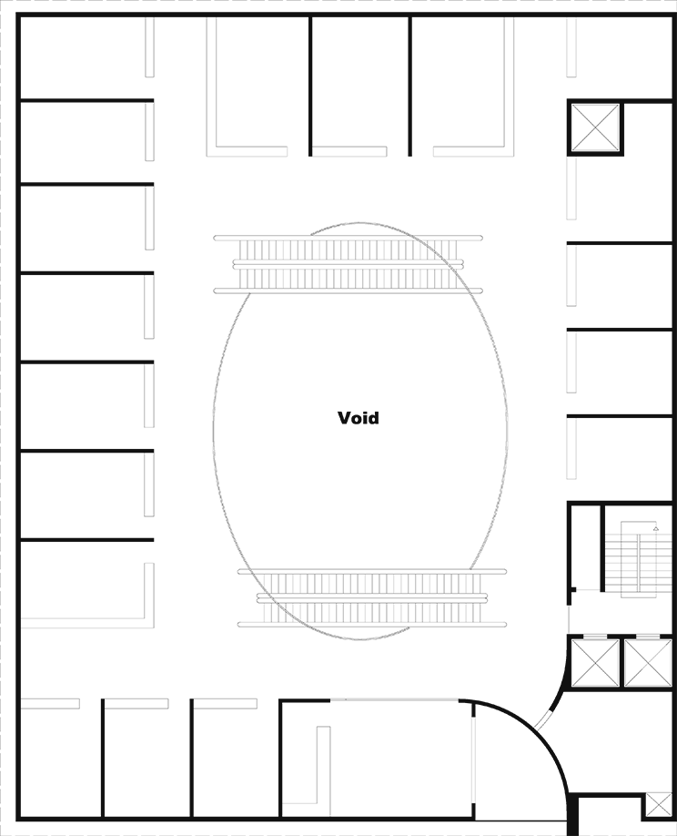 یکی از ویژگی های طرح، یک شکل خمیده به سمت چپ است که موجب می شود که فضای داخلی بزرگتر به نظر برسد.