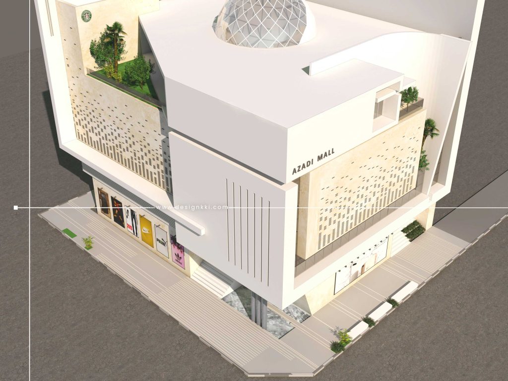 بخش تجاری در طبقه همکف، اول و دوم واقع شده است که با چشم اندازی بیضی شکل و پله برقی به یکدیگر دسترسی دارند.