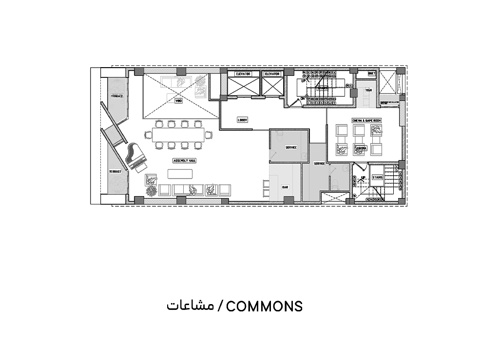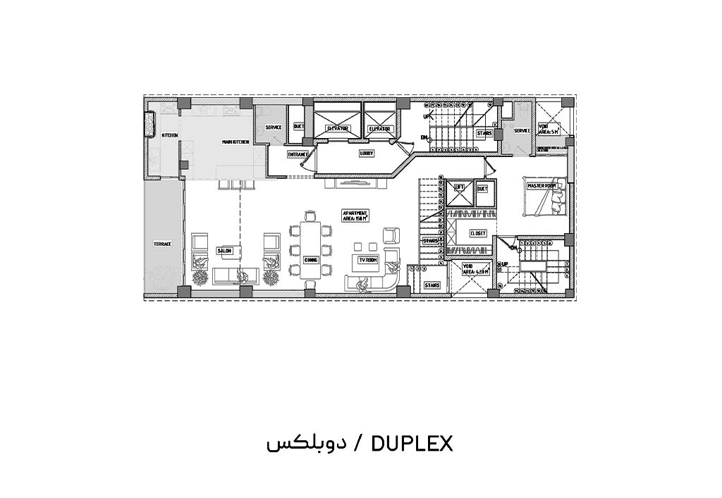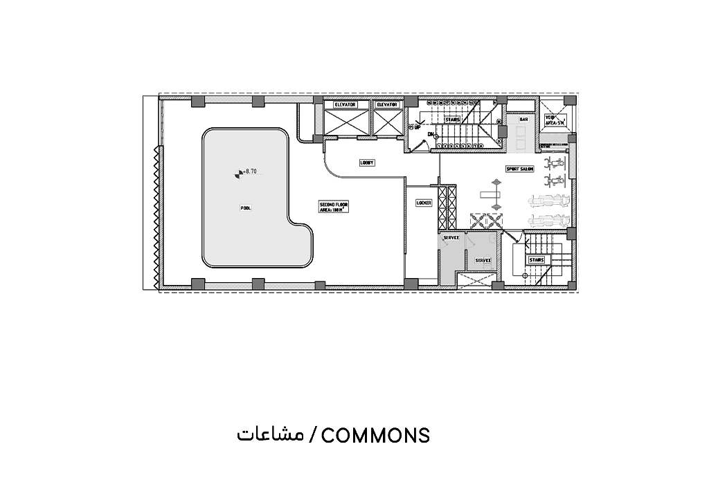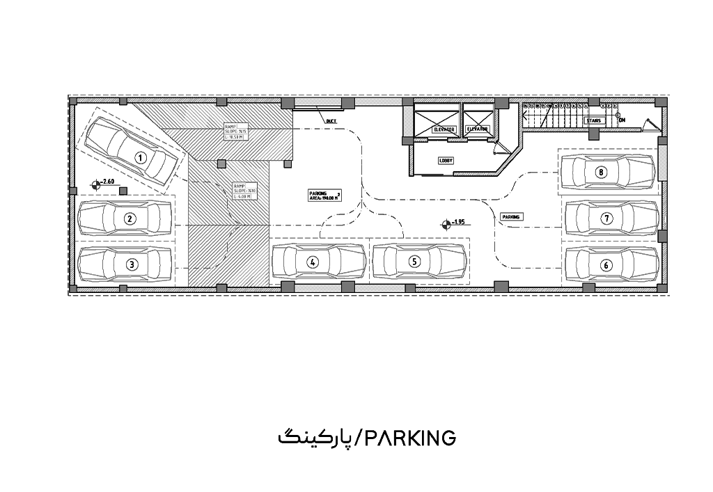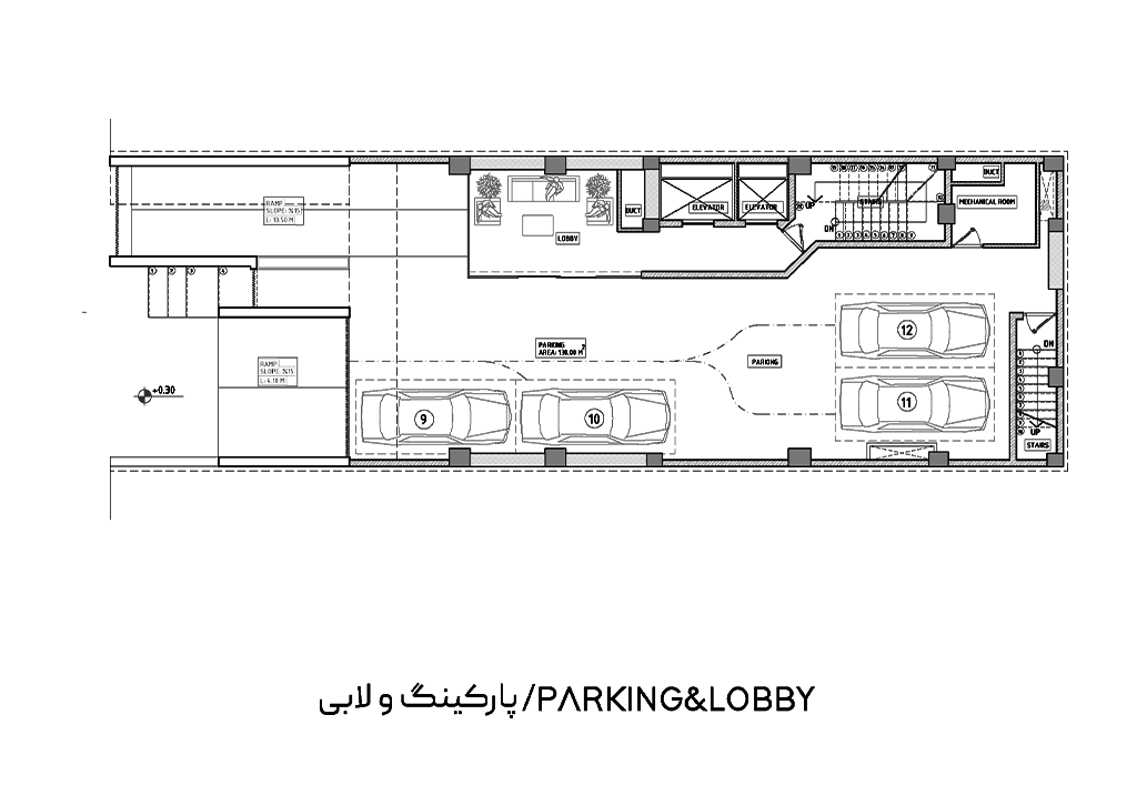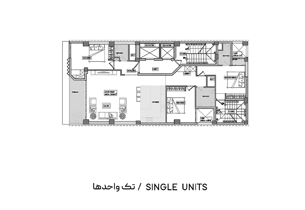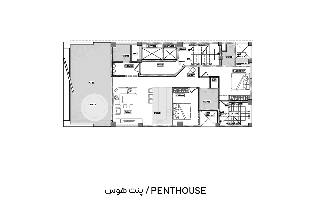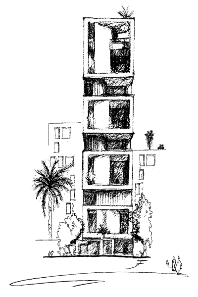 این مجتمع در منطقه کیانپارس اهواز در زمینی به مساحت ۳۰۰ متر مربع با زیربنای ۲۴۵۰ متر در ۱۲ طبقه ساخته شده است. این مجتمع شامل ۲ واحد ۱۵۸ متری و ۳ واحد دوبلکس و یک پنت هاوس ۱۱۴ متری است. نمای این ساختمان با رویکردی مینیمالیستی و مدرن طراحی شده است و با استفاده از فرمهای هندسی خالص، سطوح سفید و فرورفتگیهای جسورانه ترکیبی بصری چشمگیر و متعادل ایجاد کرده است. قابهای حجمی بزرگ در هر طبقه، ریتم عمودی قوی و انسجام بصری را در سراسر نما ایجاد میکنند. این قابها هم به اهداف زیباییشناختی و هم عملکردی خدمت میکنند و عمق میبخشند و سایه ایجاد میکنند. تضاد بین سطوح توپر و تو خالی، بازی جذابی از نور و سایه ایجاد میکند و به ساختمان شخصیتی پویا میبخشد.