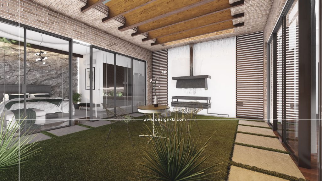 شرایط مشابه برای واحد پسر کوچک و در طبقه اول تعبیه شده است که عملکردی شبیه حیاط مرکزی دارد.