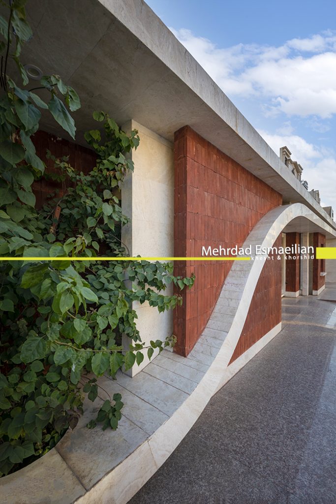مجتمع مسکونی طهماسبی با نمایی ترکیبی از آجر چوب و سنگ اجرا شده است که استفاده از متریالی همساز با اقلیم و همنشینی مناسب متریال ها کنار هم نگاه بیننده را به خود جلب می کند