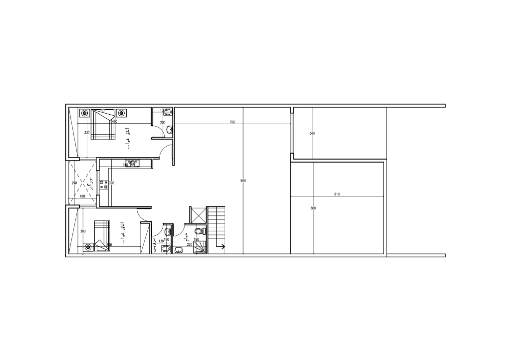 به منظور رعایت امنیت فضایی میتوان تراس را در طبقه بالاتر با بازشو دید که این بازشوهای چوبی بخشی از نمای اصلی را تشکیل میدهند.