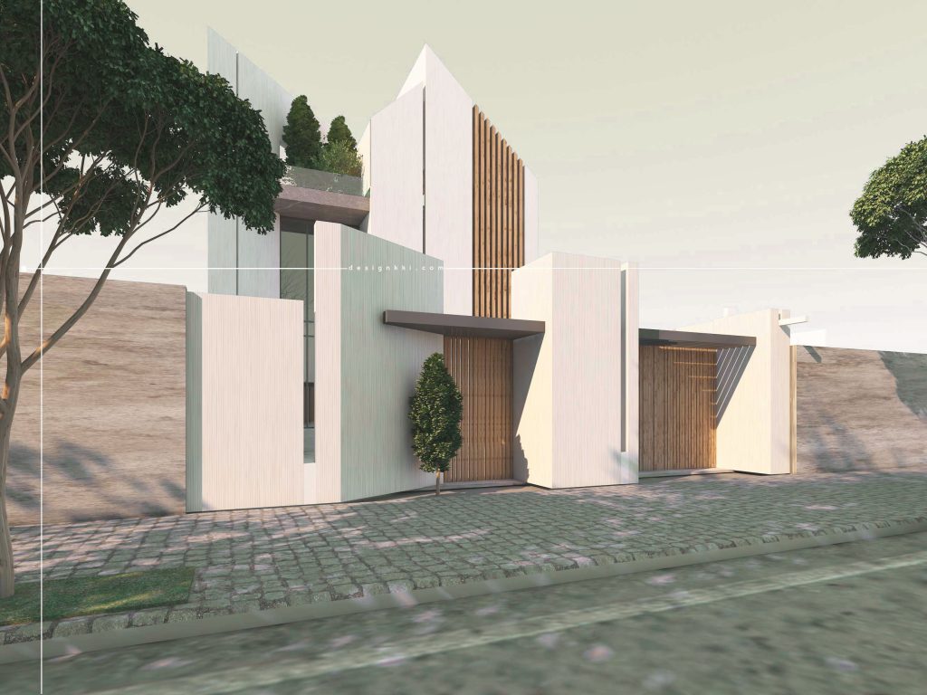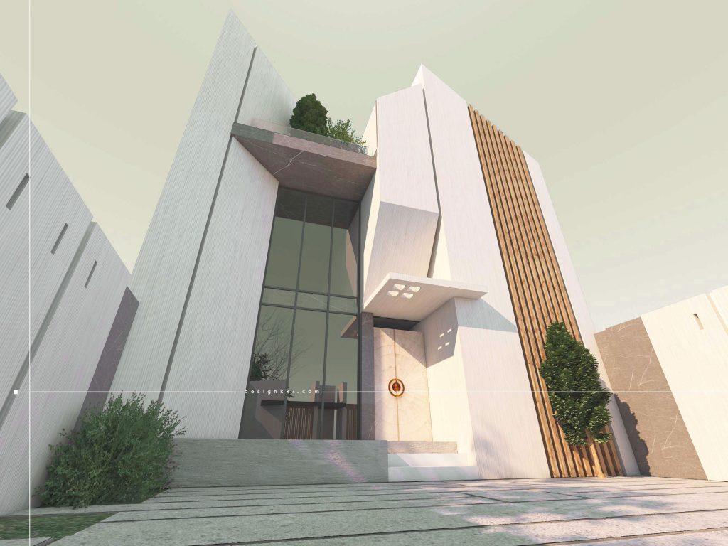 متریال این پروژه سنگ و چوب در نظر گرفته شده است . در طراحی کلی تلاش گردیده با استفاده از خطوط و عناصر عمودی ارتفاع ساختمان را بلندتر جلوه داد .