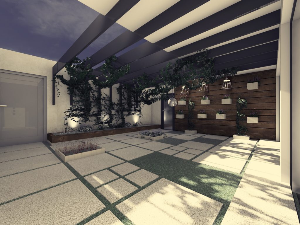 در قسمت پایین که ورودی می باشد پوشش جداره ها بااستفاده از شیشه می باشد . در قسمت بالا یک حجم صلب مربعی شکل وجود داشت . ماحصل ایده چرخش حجم صلب مربعی ،طراحی قاب مریع شکل برای حجم کلی ، تکرار و کشیدگی مربع و تغییر سایز در جداره ی بیرونی ساختمان منجر به طراحی و اجرای نمایی ساده ، خاص و متفاوت شده است. این نما با استفاده از سنگ اجرا شده و مربع های تعبیه شده روی آن با برش روی سنگ ایجاد شده اند.
