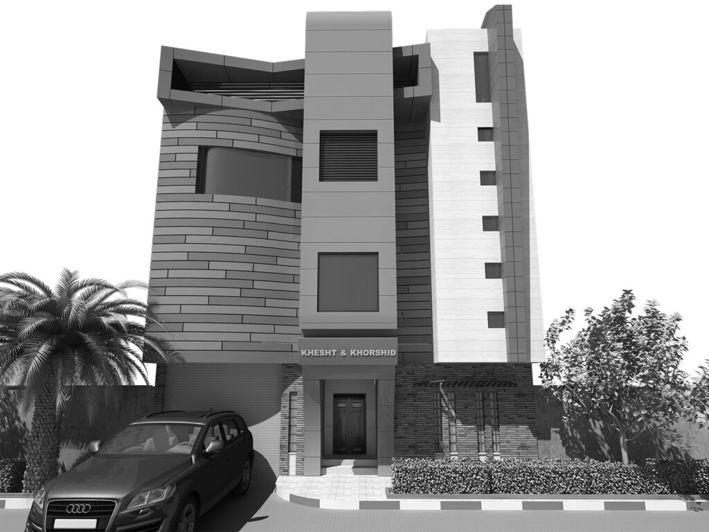 نمای این ساختمان ترکیبی از کامپوزیت و سنگ می باشد.استفاده از متریال صنعتی و سخت متناسب با کاربری اداری آن می باشد