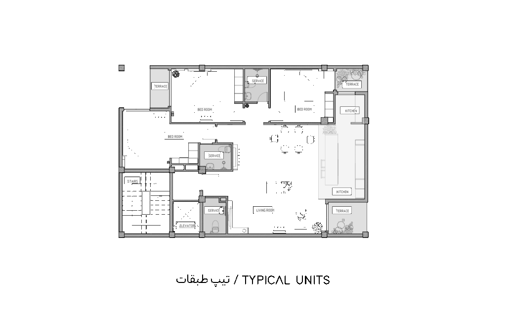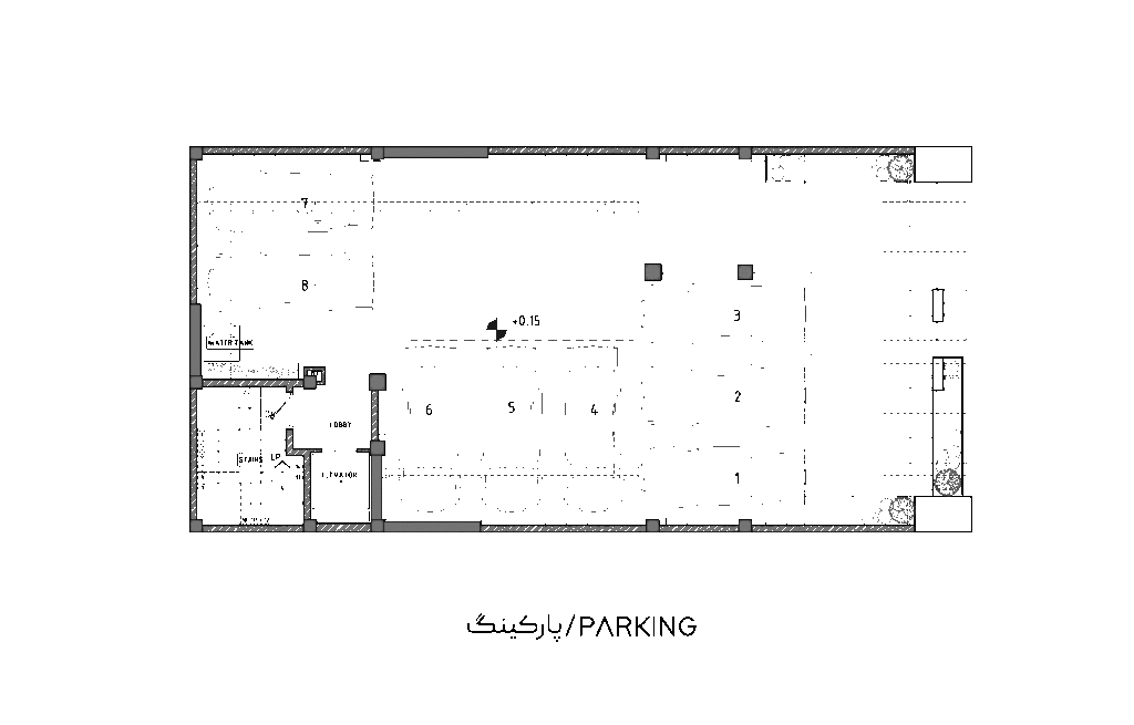 در طبقهی همکف، ورودی ساختمان شماره ۲۶ با دروازهای مدرن، فضای سبز و سایهبان چوبی بهخوبی تعریف شده است. استفاده از خطوط عمودی و تکرار منظم بازشوها، بر ارتفاع ساختمان تأکید میکند بدون اینکه به بافت اطراف فشار بیاورد. پنلهای مشبک آجر نهتنها باعث کنترل نور و حفظ حریم میشوند، بلکه با عبور نور فیلتر شده به فضاهای داخلی، کیفیتی شاعرانه به تجربهی سکونت میبخشند. در مجموع، این بنا با زبان معماری معاصر خود، ضمن وفاداری به مصالح بومی، پاسخی محترمانه به موقعیت شهری خود در محله باهنر اهواز ارائه داده است.