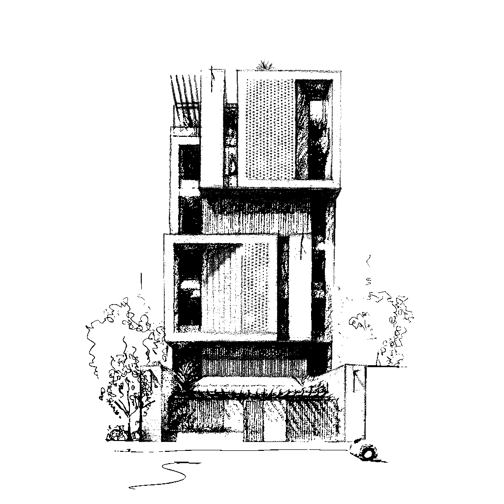 ساختمان شماره ۲۶ که در محلهی باهنر اهواز واقع شده، نمونهای برجسته از زبان معماری معاصر است که در عین سادگی، با مصالح اصیل و حساسیت نسبت به بافت شهری طراحی شده است. این نما بازی هوشمندانهای میان حجمهای صلب و فضاهای خالی دارد؛ جعبههای آجری با قابگیری پنلهای مشبک و فینهای عمودی، عمق و سایهروشن چشمگیری ایجاد کردهاند. دو حجم آجری که به صورت افقی جابهجا شدهاند، حس پویایی و هویت مجسمهوار به بنا میدهند و از یکنواختی ارتفاع جلوگیری میکنند. آجر با رنگ گرم خود در تضاد ظریف با مصالح تیره و سطوح شیشهای، تعادلی دلنشین بین صمیمت و ظرافت ایجاد کرده است.