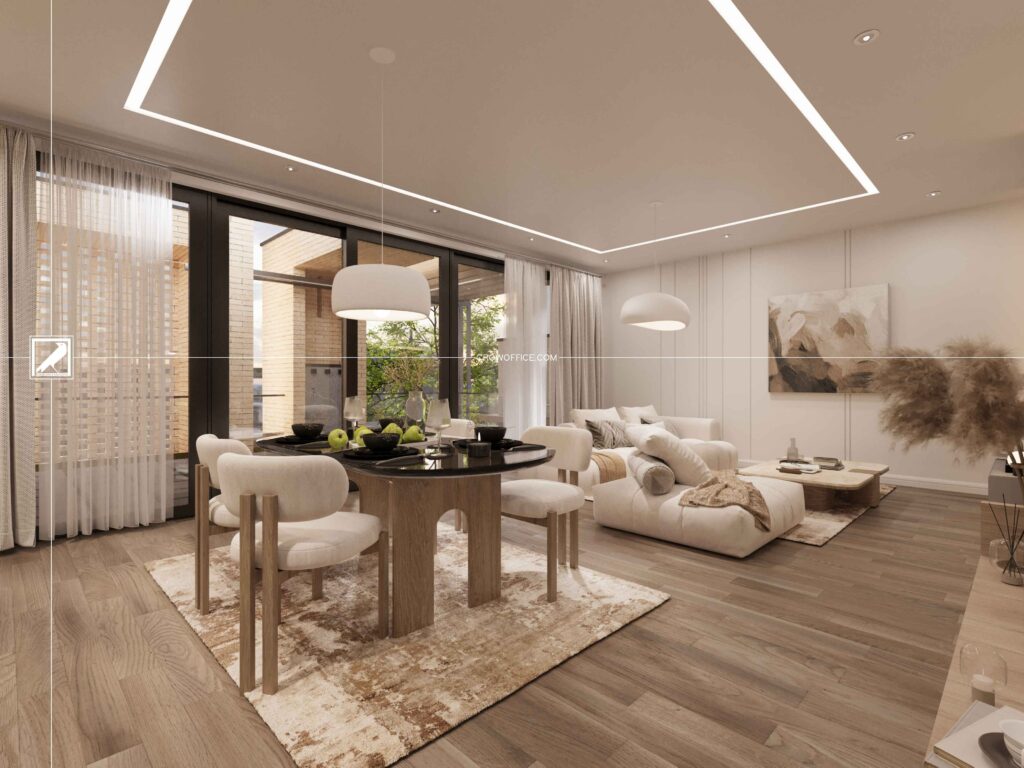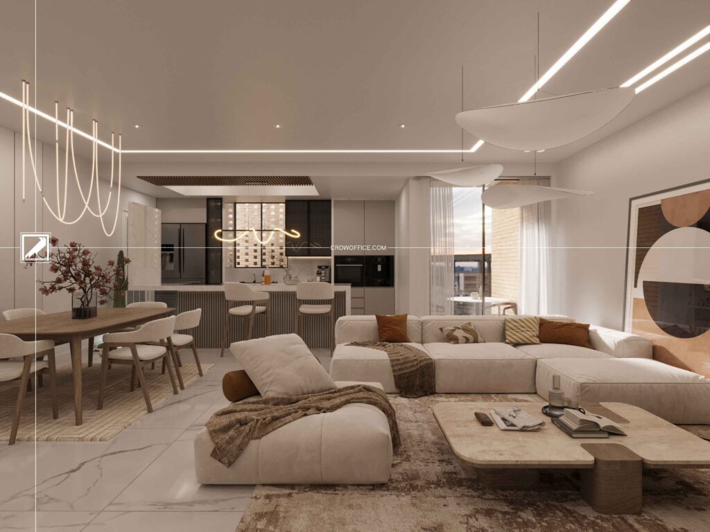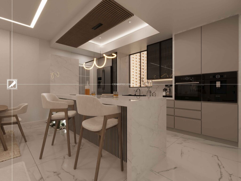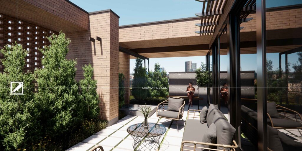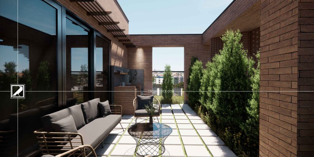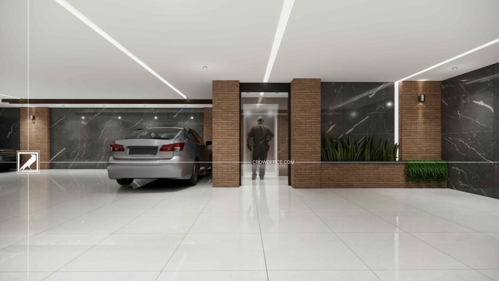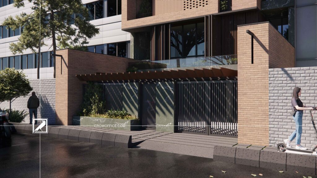 در طبقهی همکف، ورودی ساختمان شماره ۲۶ با دروازهای مدرن، فضای سبز و سایهبان چوبی بهخوبی تعریف شده است. استفاده از خطوط عمودی و تکرار منظم بازشوها، بر ارتفاع ساختمان تأکید میکند بدون اینکه به بافت اطراف فشار بیاورد. پنلهای مشبک آجر نهتنها باعث کنترل نور و حفظ حریم میشوند، بلکه با عبور نور فیلتر شده به فضاهای داخلی، کیفیتی شاعرانه به تجربهی سکونت میبخشند. در مجموع، این بنا با زبان معماری معاصر خود، ضمن وفاداری به مصالح بومی، پاسخی محترمانه به موقعیت شهری خود در محله باهنر اهواز ارائه داده است.