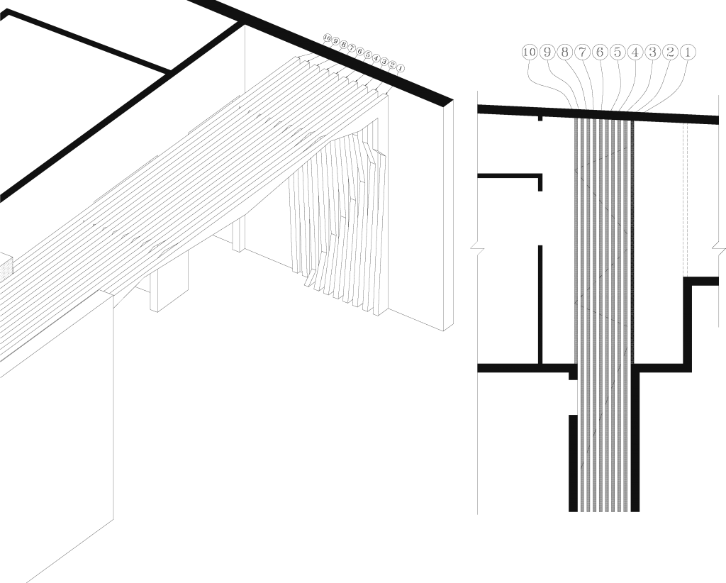 استفاده از چوب در سقف در ورودی واحد و امتداد دادن آن تا جداره پشت کانتر،تعیین کننده مسیر حرکت و شاخص کردن جایگاه کانترمنشی می باشد.