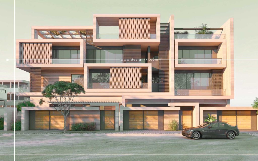 در گوشه اصلی از حجم بنا به دلیل نحوه چینش باکس ها خلایی در نما ایجاد میشد که در دید بیننده حس کوتاه بودن و عدم هماهنگی در بخشی از نما را القا می کرد بنابراین با طراحی بام سبز این مشکل برطرف شد