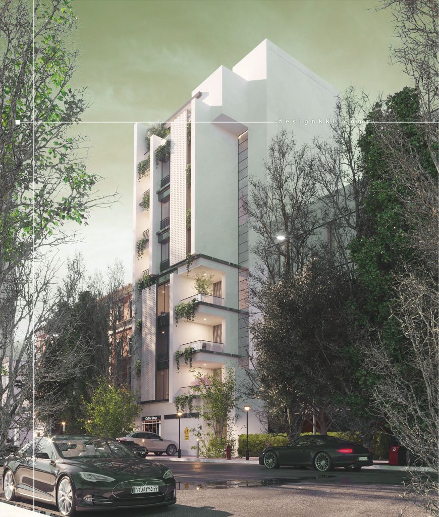 🟡کاور کردن بخشهایی از پنجره جهت شکست نور و ایجاد محرمیت و خروج نما از حالت اداری از دیگر تمهیداتی است که جهت طراحی نمای این مجموعه درنظر گرفته شده است .