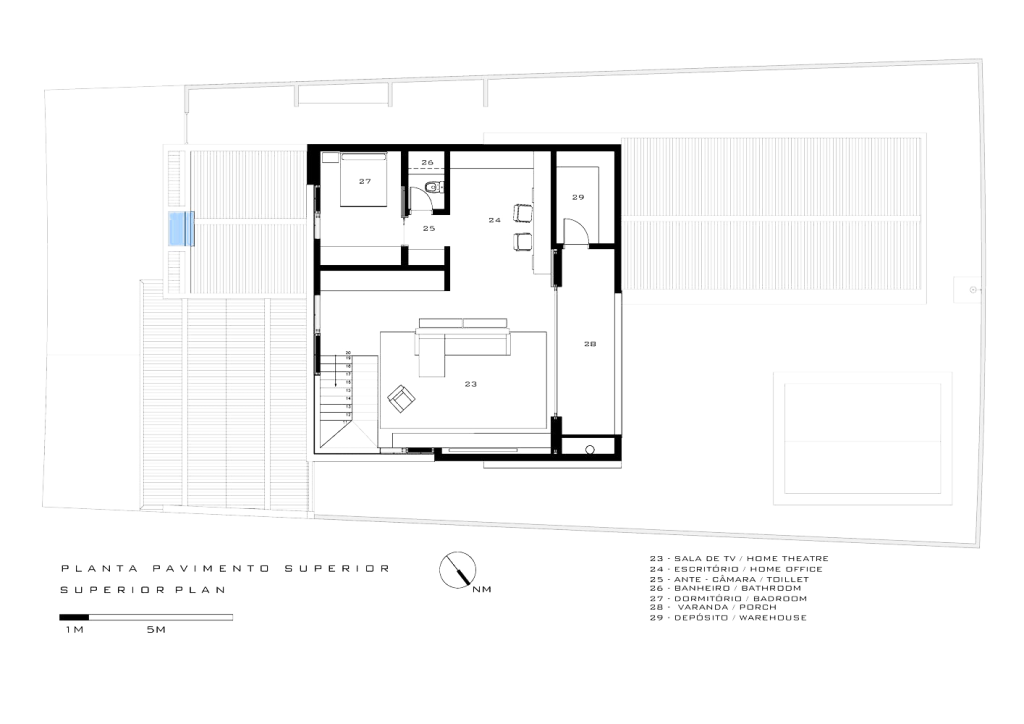 With the idea of the maximum openness to the garden, sliding wooden brises are fundamental because they allow to natural light illuminate the areas and filter the sun. The priority of the clients was a good living area, and with this premise the house has fully mixed internal and external areas, they can mix or separate when the sliding doors are closed