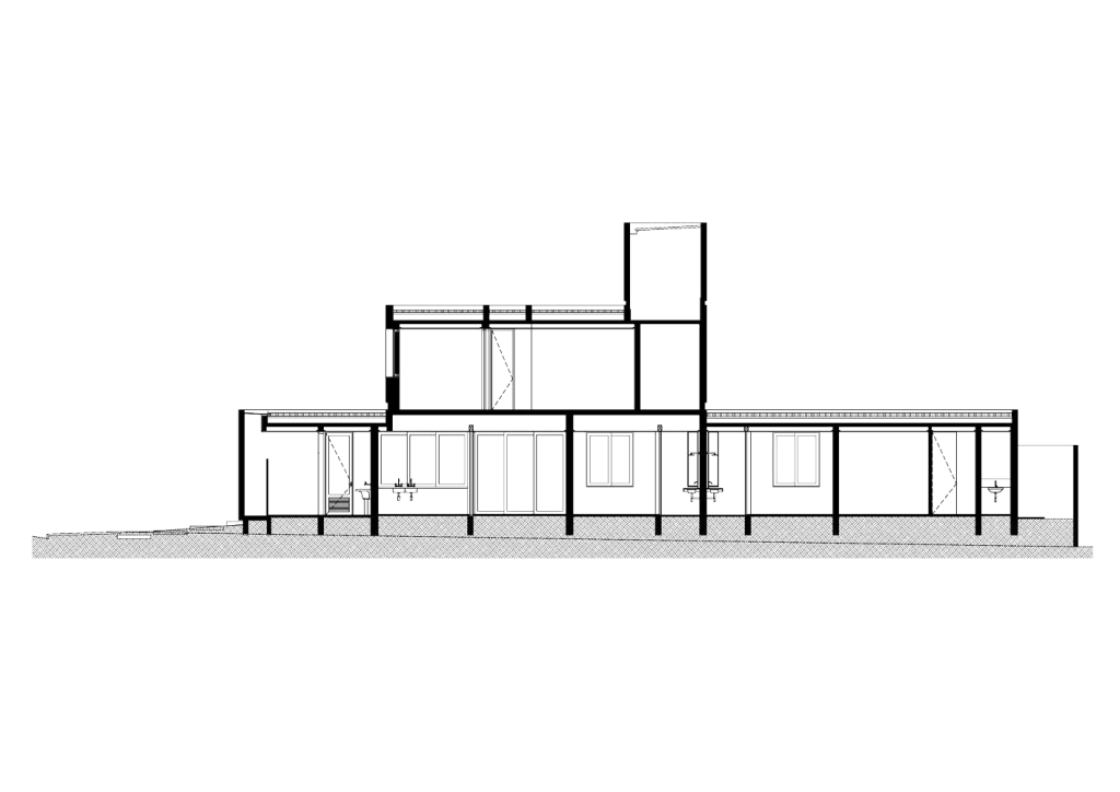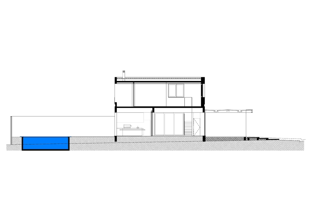 Doors collapse and hide in wall sandwiches making the whole house fluid. But when requested, they can isolate the residence. Same thought for the kitchen panel: when open, it is possible to forget that there is closure between the areas. When collected, a wooden skin covers the entire face and closes the kitchen.