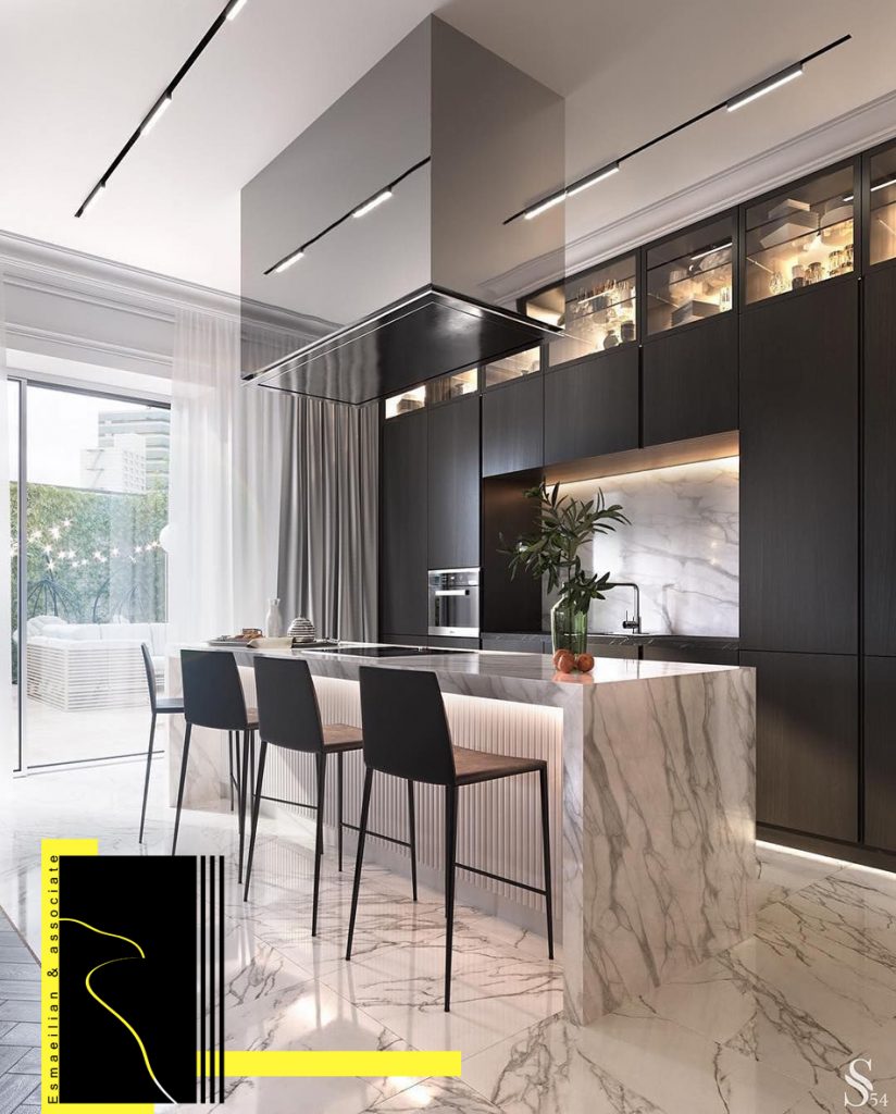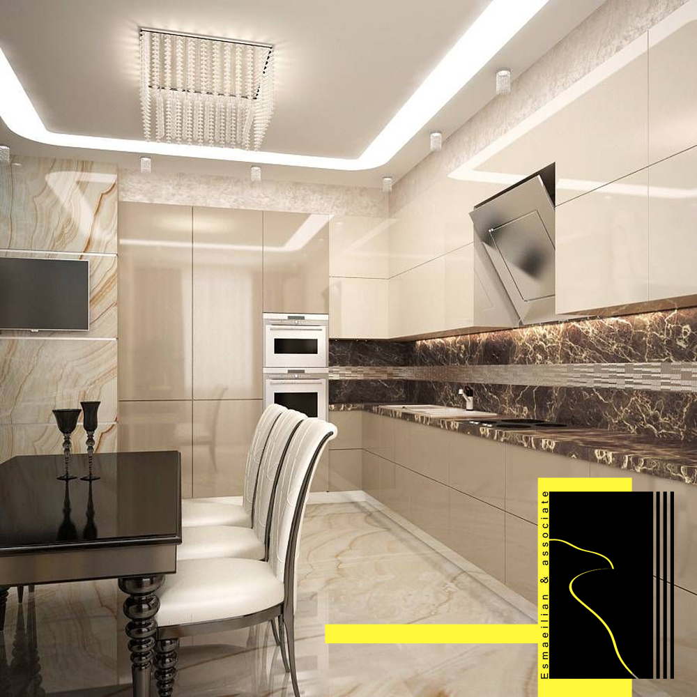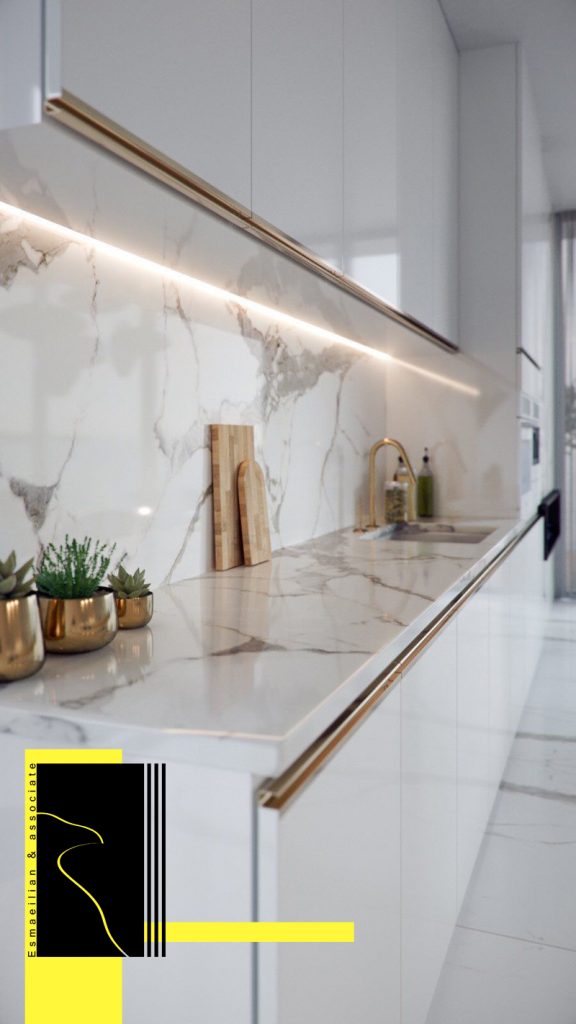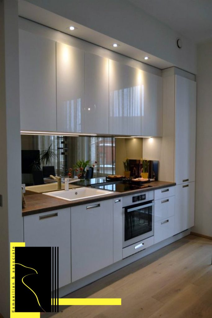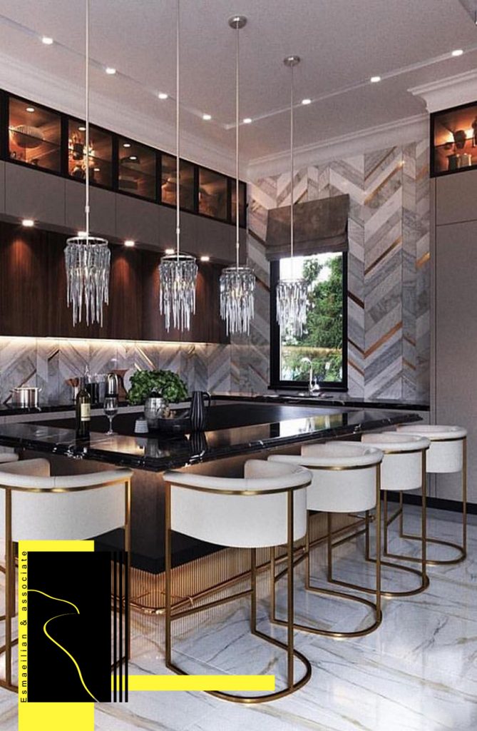 The secret lights in the kitchen are running in the bottom and top of the cabinets so that they are not directly visible, reflecting the reflection on the floor and ceiling. In addition to less heat generation, these lights also have a lower rate in power consumption. The counter is used to perform most tasks in the kitchen from the counter.