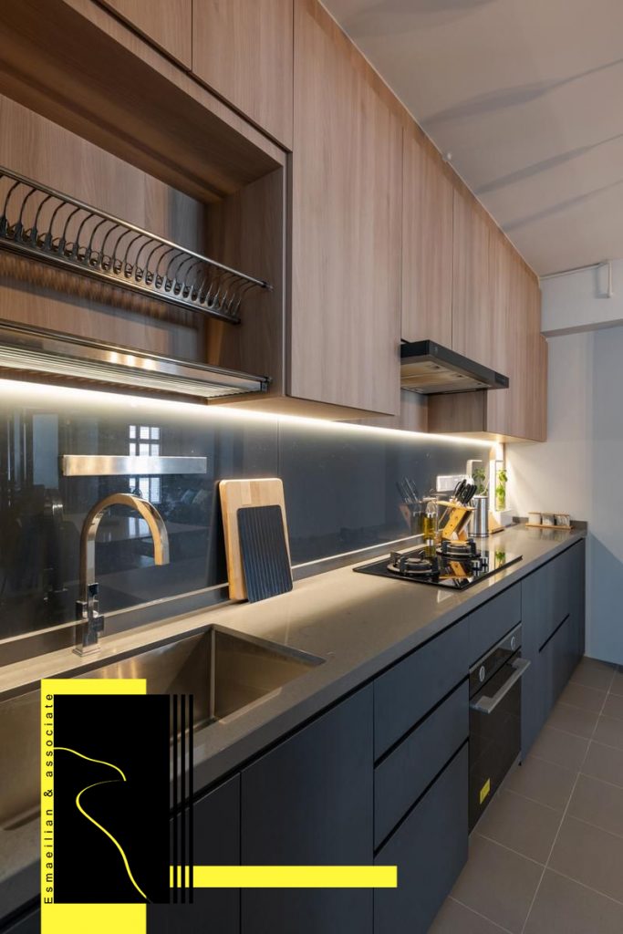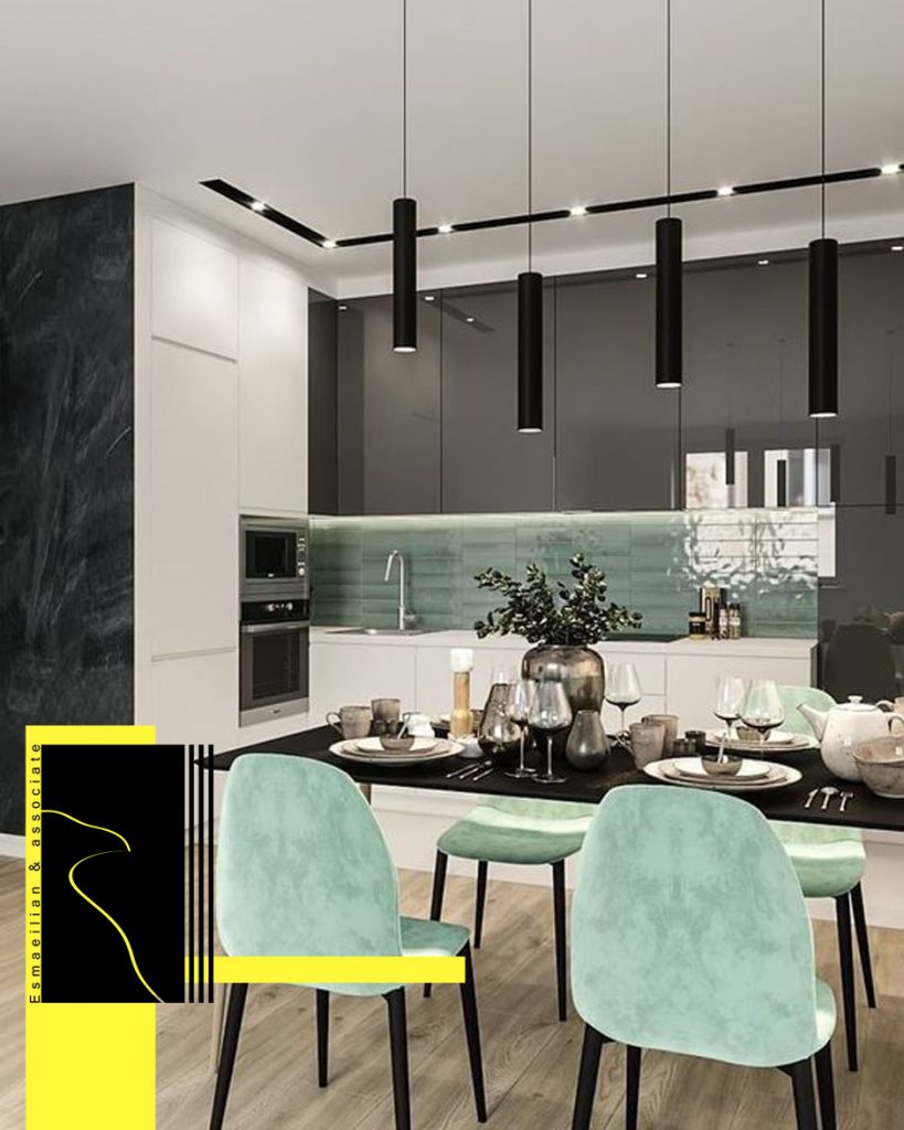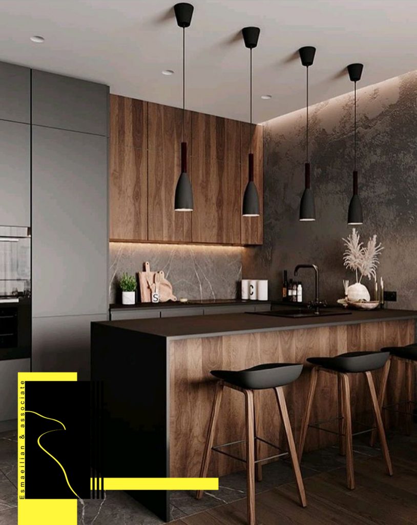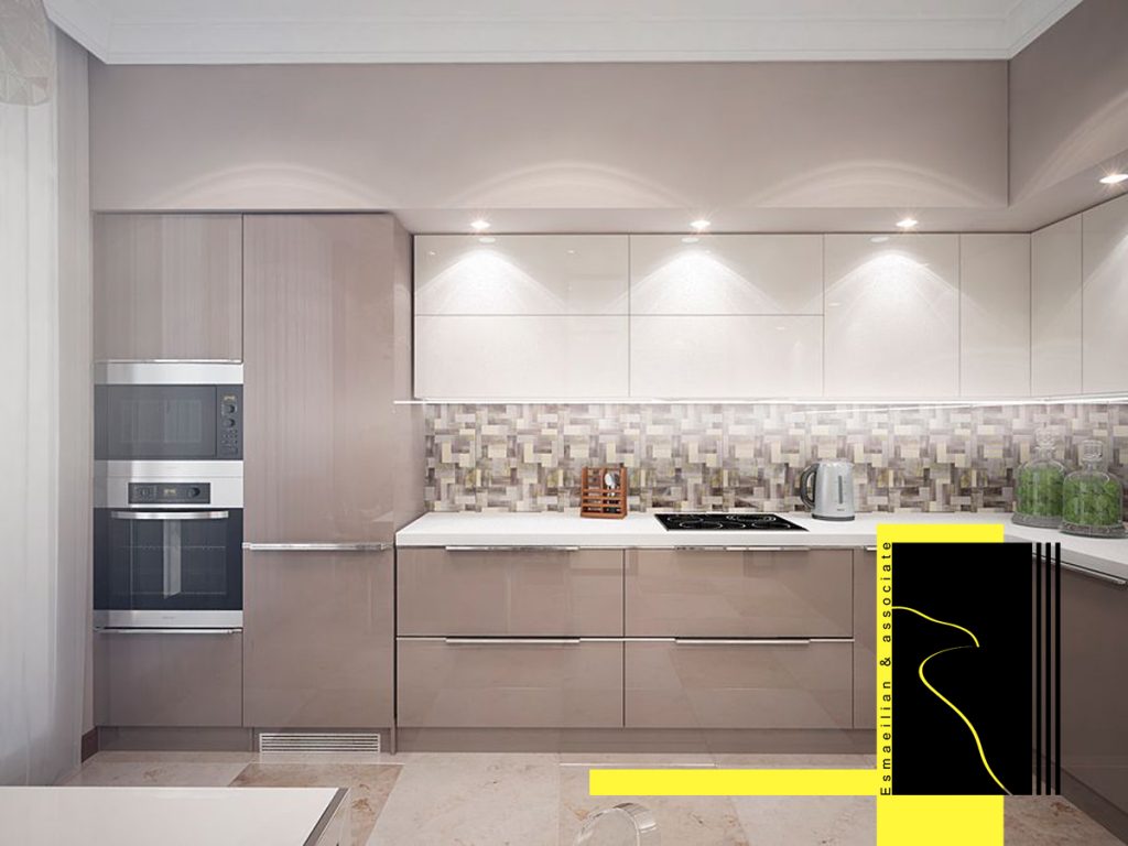 The secret lights in the kitchen are running in the bottom and top of the cabinets so that they are not directly visible, reflecting the reflection on the floor and ceiling. In addition to less heat generation, these lights also have a lower rate in power consumption. The counter is used to perform most tasks in the kitchen from the counter.