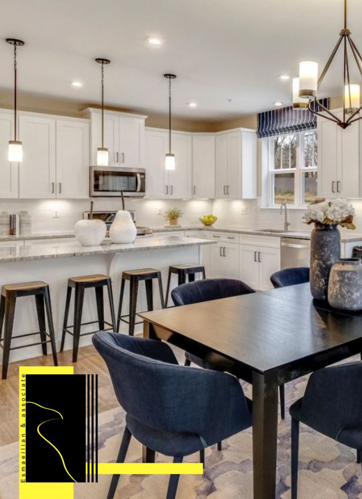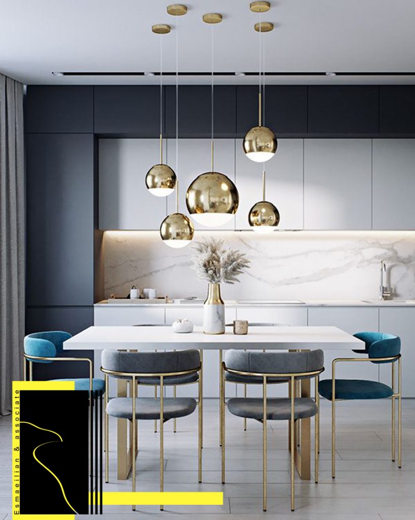 If you want better and more lighting in the open, choose the pendant light below the swing. If the kitchen floor is covered with flooring that reflects light, it is better to use lighting fixtures that emit light throughout the space. Remember to use separate power switches or dimmers to control the brightness when using this method. By doing this, you can control the brightness of each part individually.