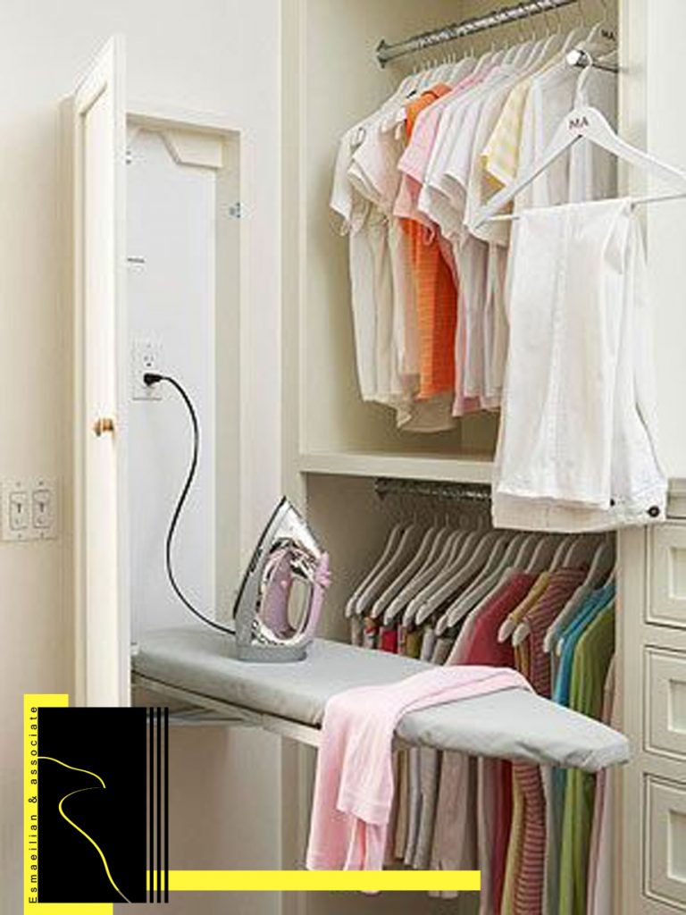 Speaking of freshly ironed clothes, ironing boards usually take up a lot of space. Even lifting ironing boards or moving ironing tables that fit inside the counter or cabinet table. Ironing tables should be selected in appropriate sizes. A sliding ironing board can be completely hidden like a drawer and can be opened and used quickly if necessary.