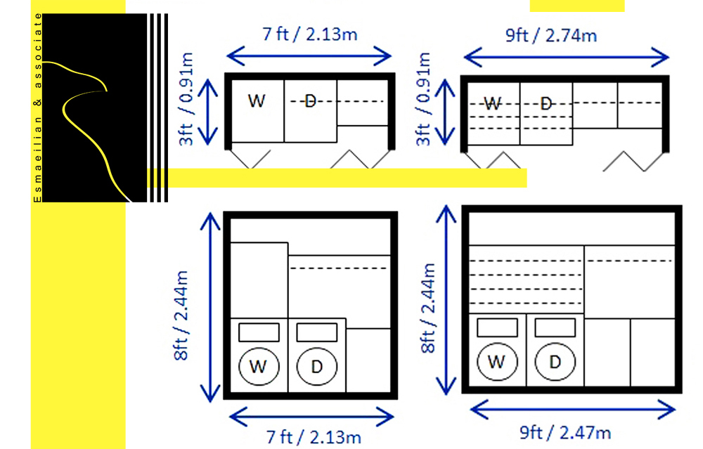 The layout of the Roman laundry depends on its dimensions. In this section, the best laundry room layout for small spaces is examined separately. But in general, the layout of the Roman laundry includes cabinets and shelves, each of which is used to place a device.