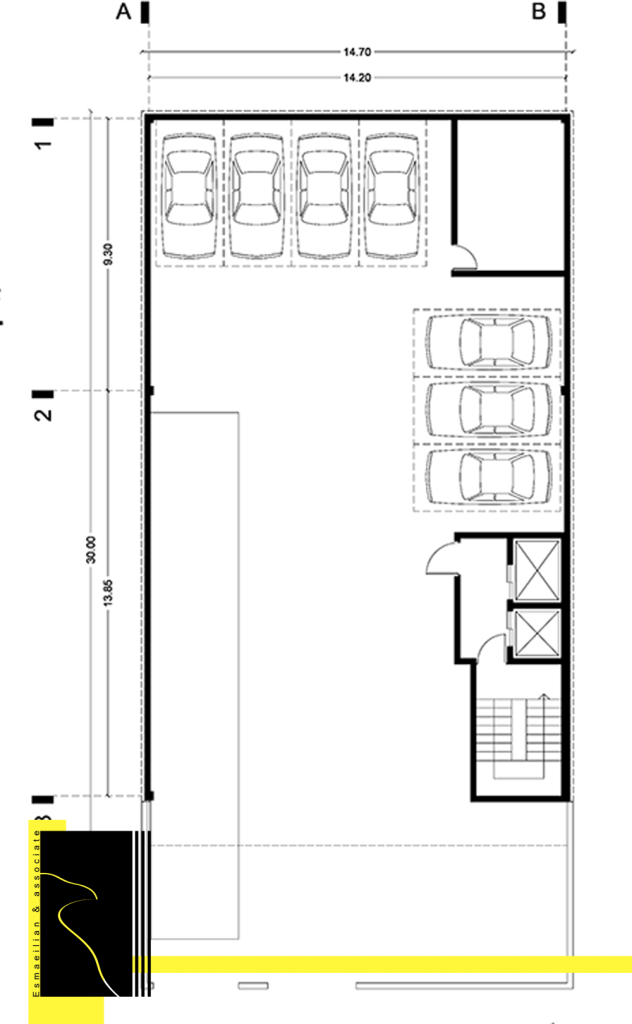 After determining the level of occupation, we first place an elevator and lift. In this stage, even in this stage, there will be a better overview of parking in the parking lot.