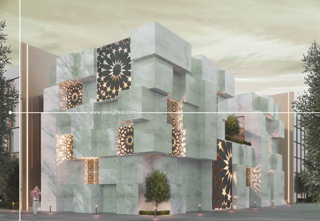 The view of this building is designed as two shells. The inner shell is glass and the orientation of external and internal communication and has been seen as spider. In the outer shell, using the GFRC panels, trying to harness the light visually and instill a picture of unity and movement to the viewer.